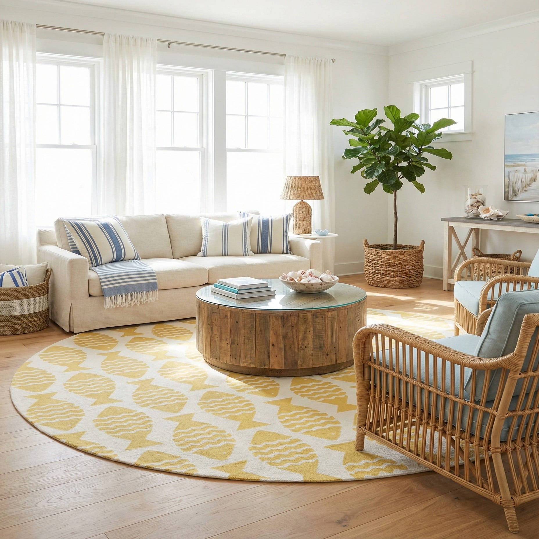 Primary image 13' x 13'  Washable Coastal Indoor / Outdoor Round Rug