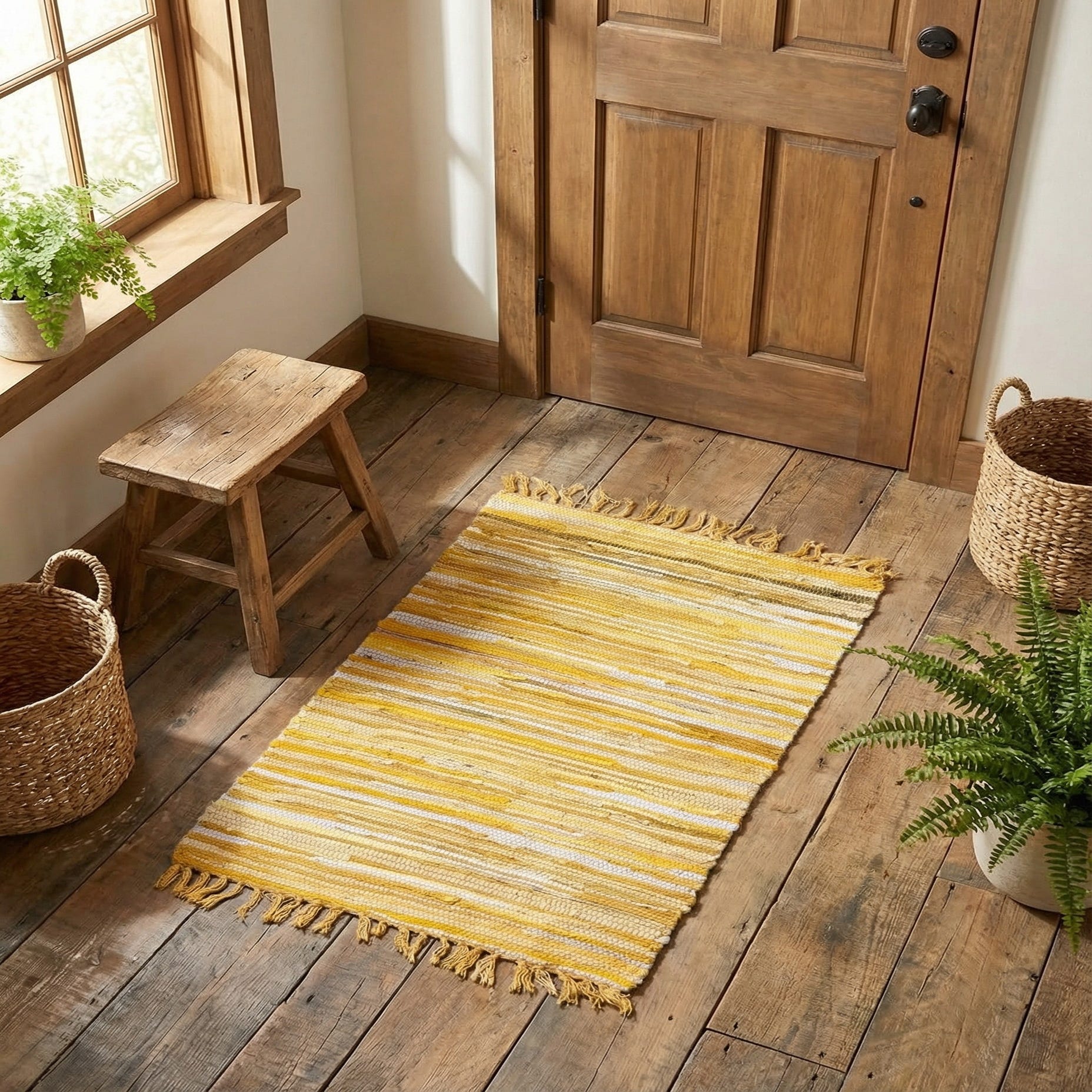 Primary color is Yellow. Colors in this rug include: Yellow, Beige, Ivory.