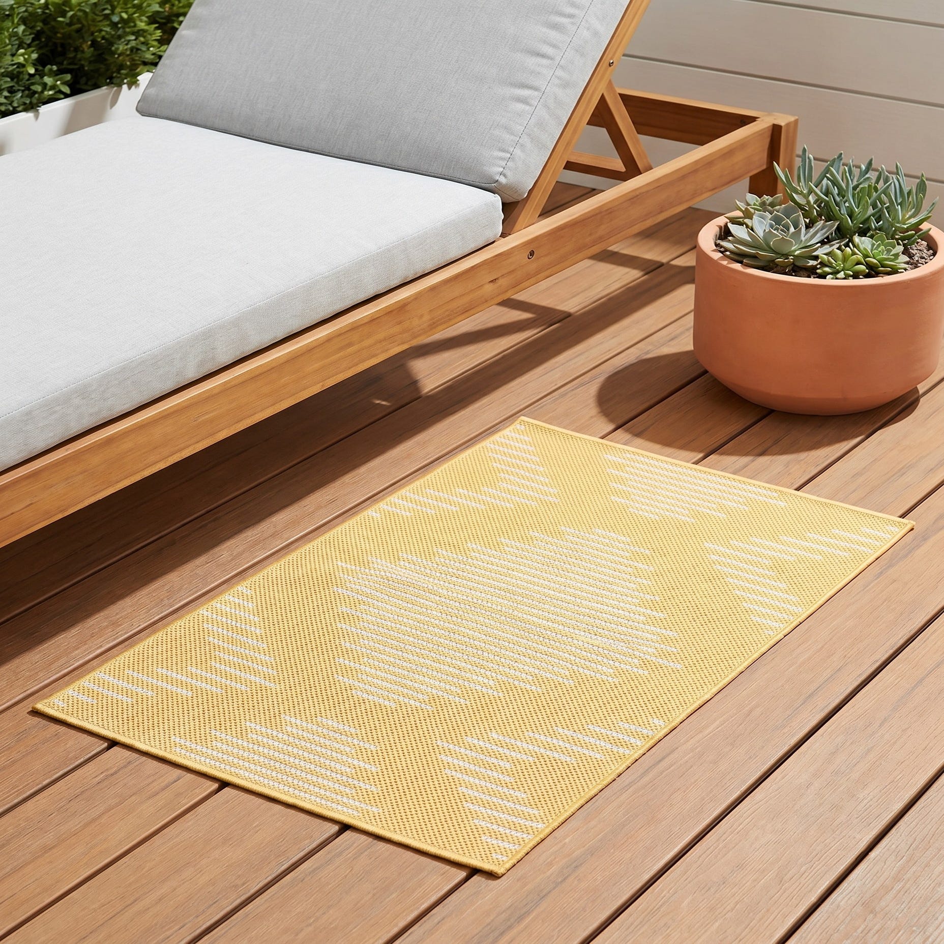 We purchased the matching runner for our deck as well. We are very pleased with the size and quality of this rug. It has been through several rainstorms and still looks brand new with all the weather conditions that it has endured.