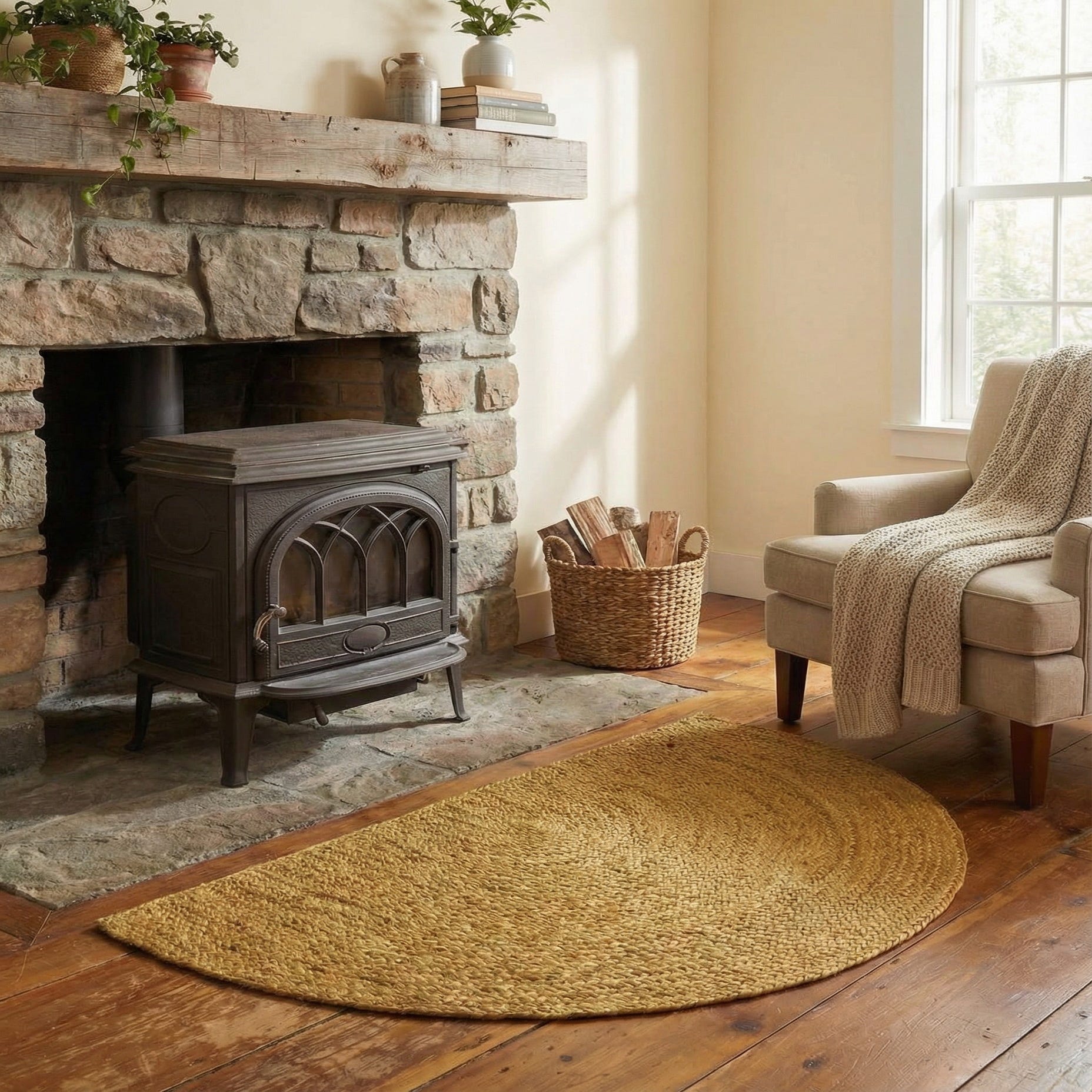 2' 2 x 3' 7 Hand Braided Jute Hearth Rug