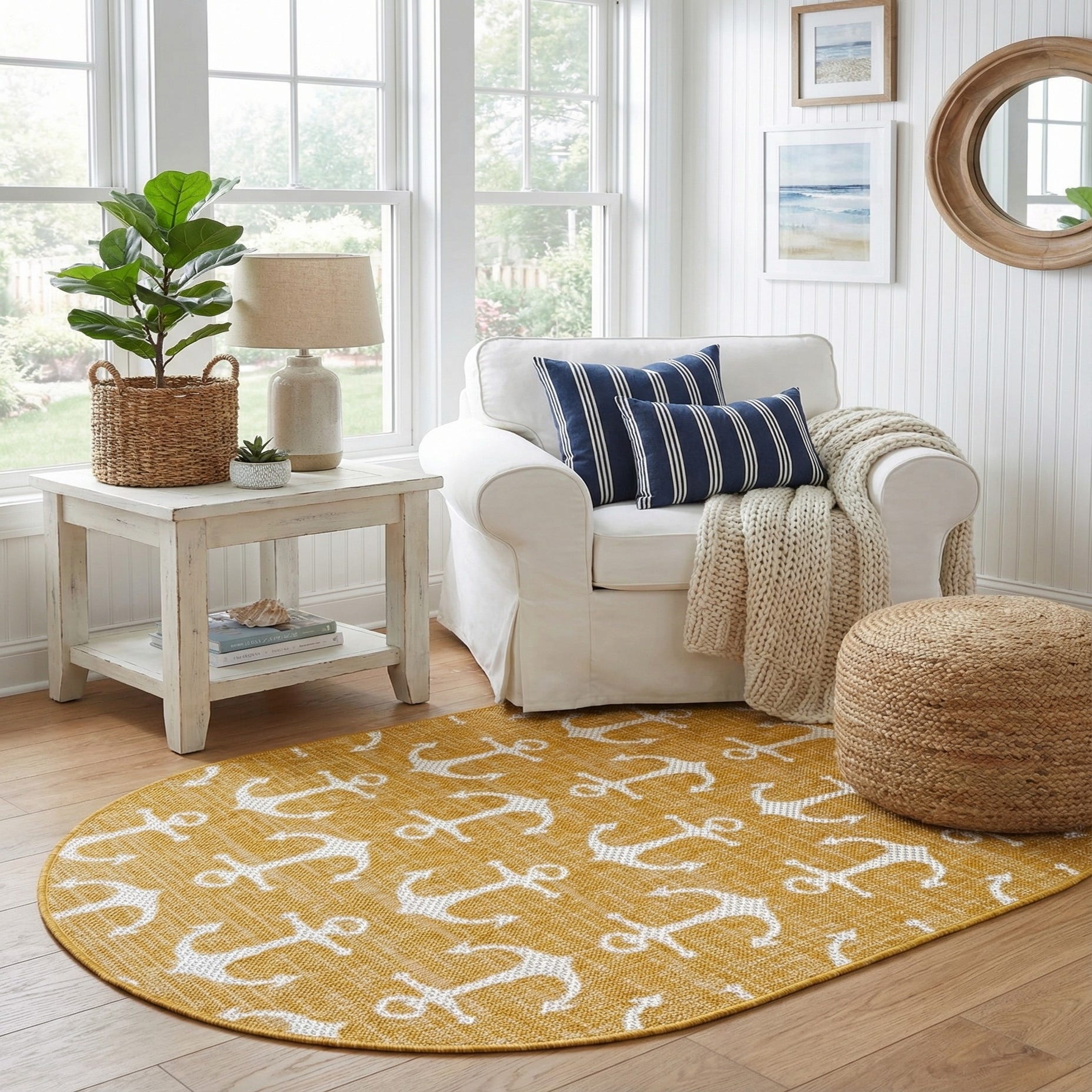 3' x 5' 3 Washable Coastal Indoor / Outdoor Oval Rug