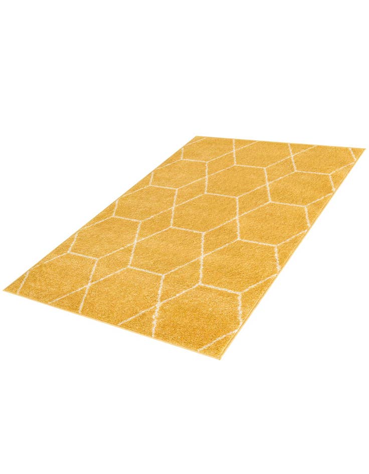 Primary color is Yellow. Colors in this rug include: Yellow, Ivory.