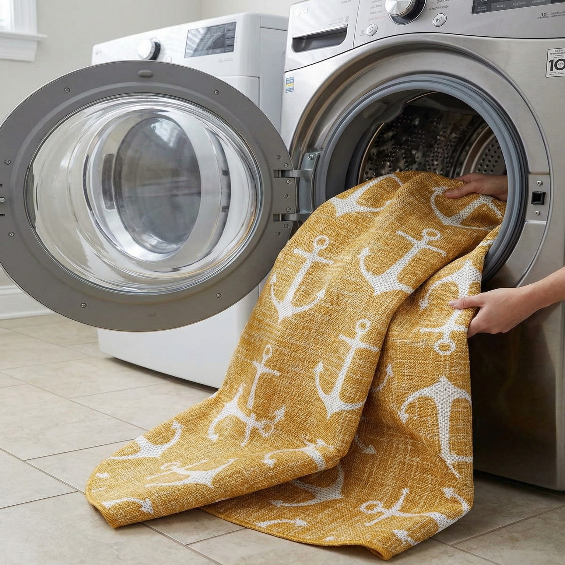 4' x 4' Washable Coastal Indoor / Outdoor Round Rug