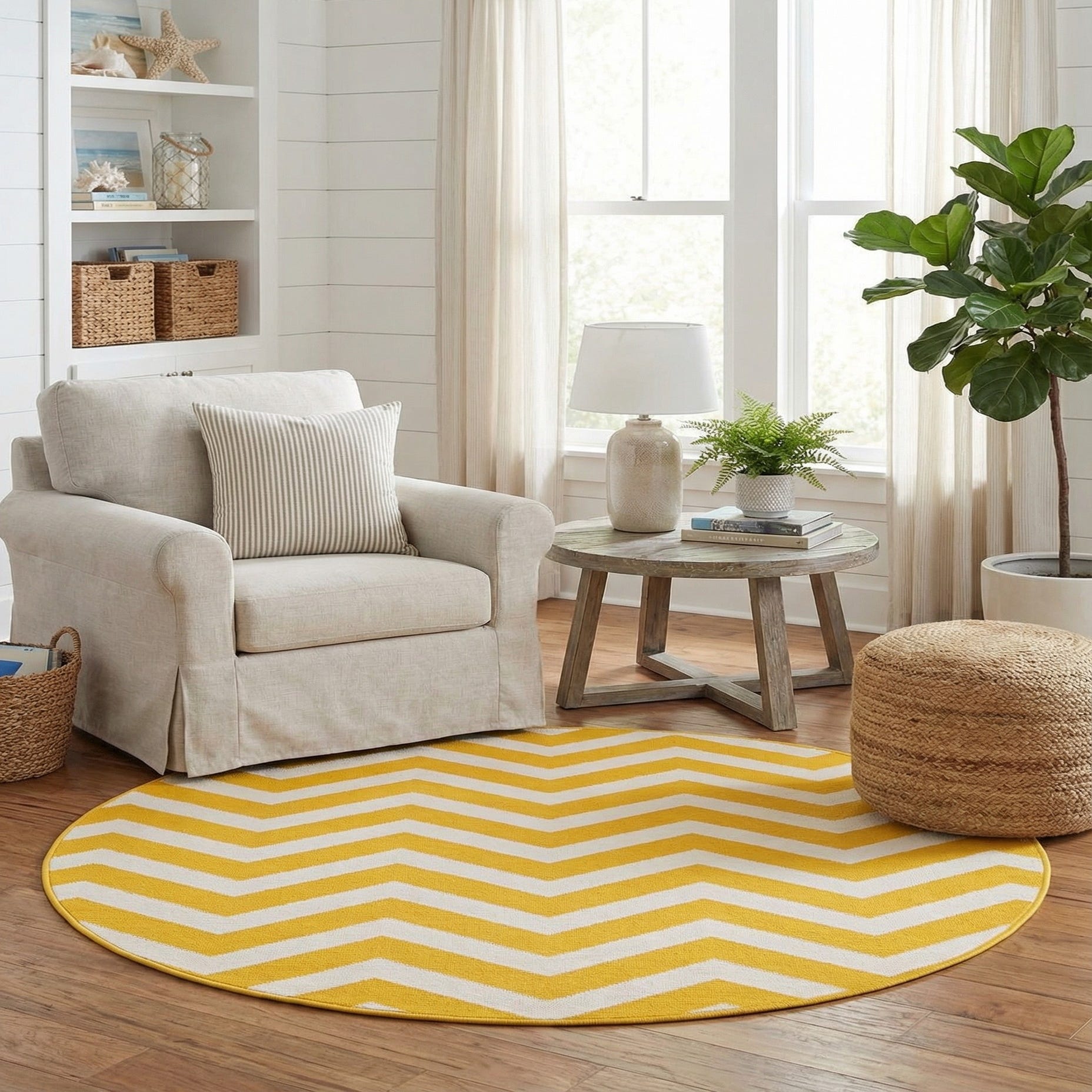 Primary image 4' x 4'  Washable Coastal Indoor / Outdoor Round Rug