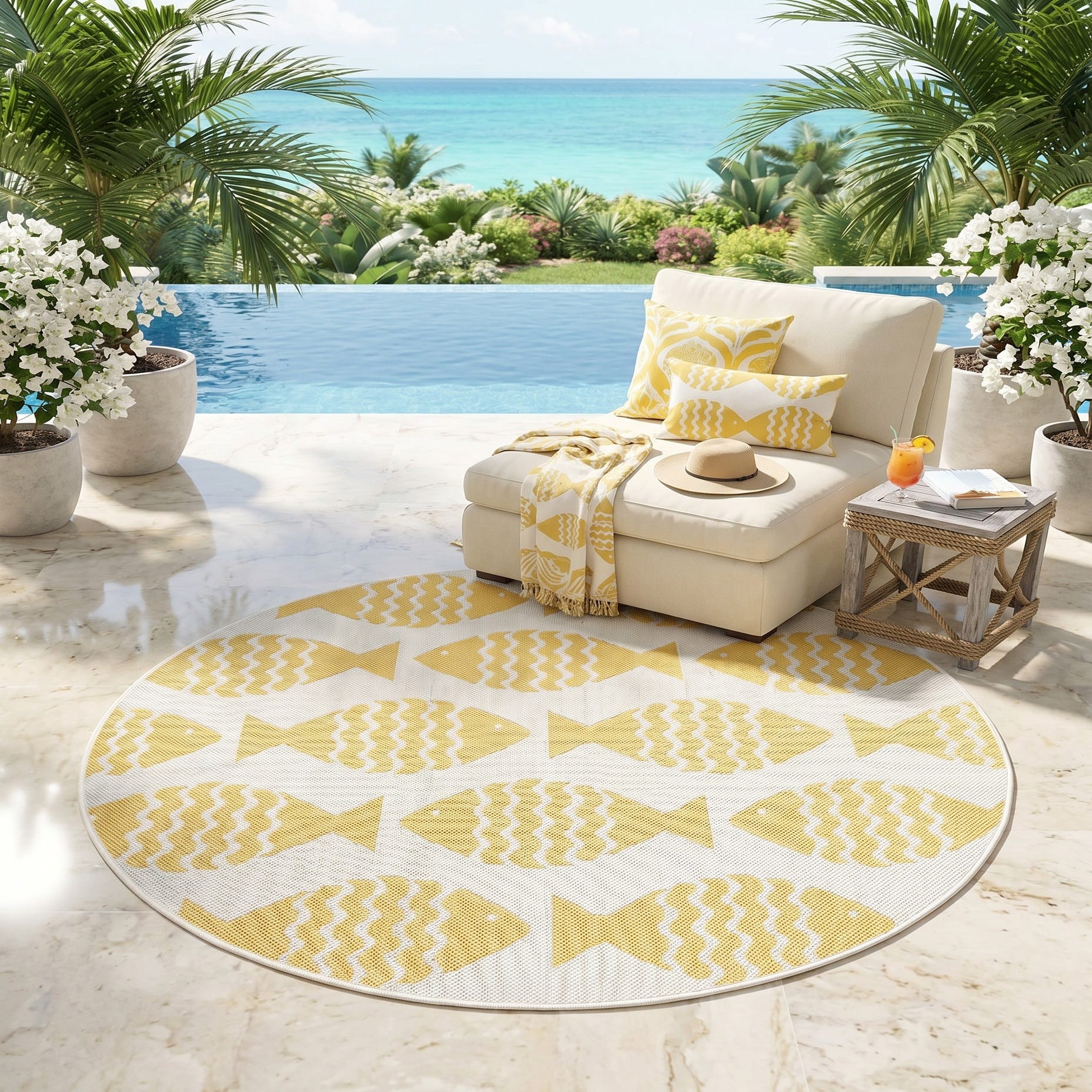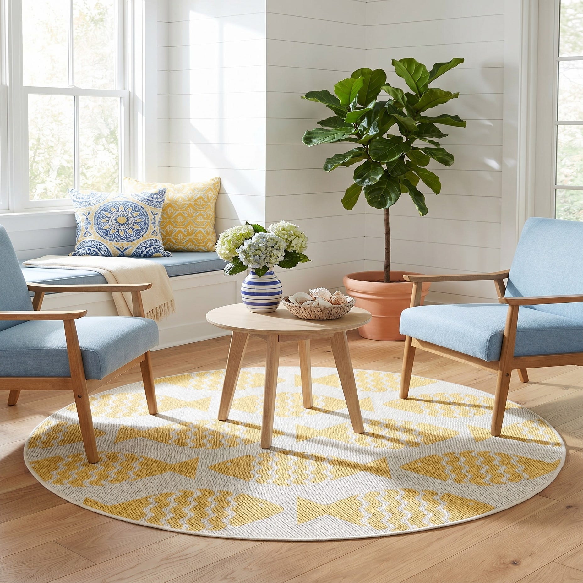 4' 1 x 4' 1 Easy-Clean Coastal Indoor / Outdoor Round Rug