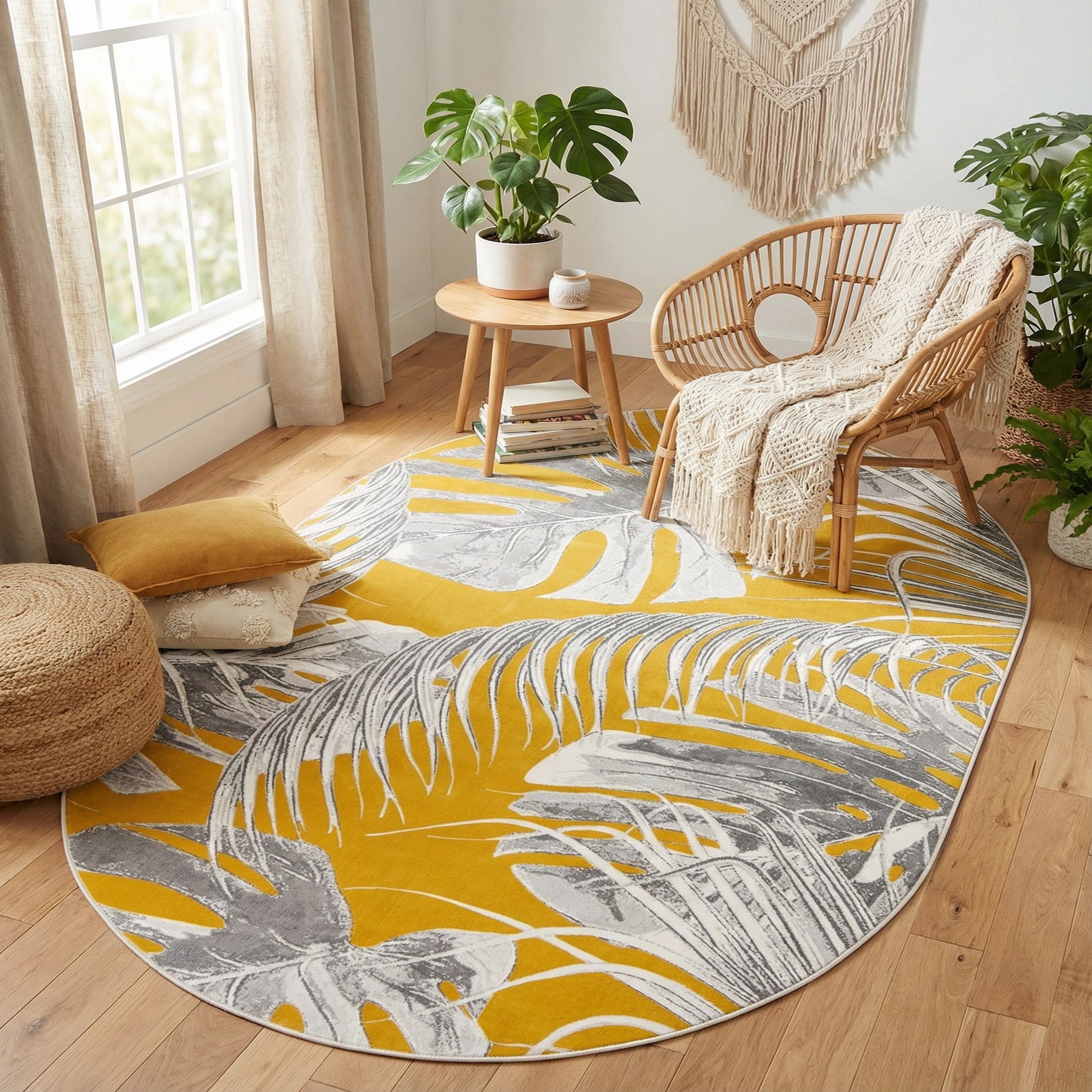 Primary color is Yellow. Colors in this rug include: Yellow, Ivory, Gray.