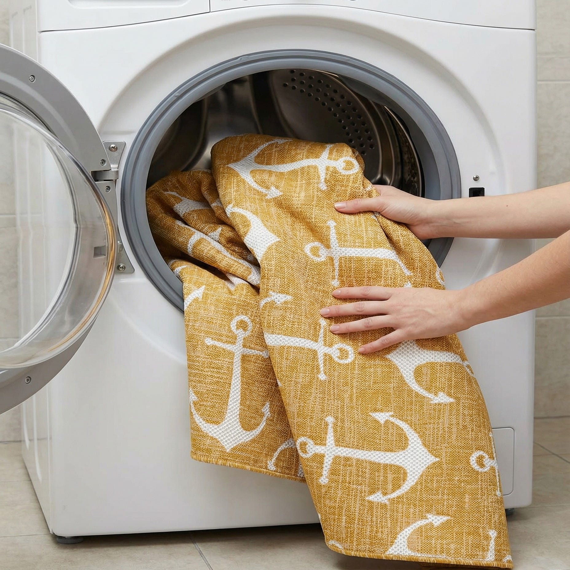 5' 3 x 5' 3 Washable Coastal Indoor / Outdoor Square Rug