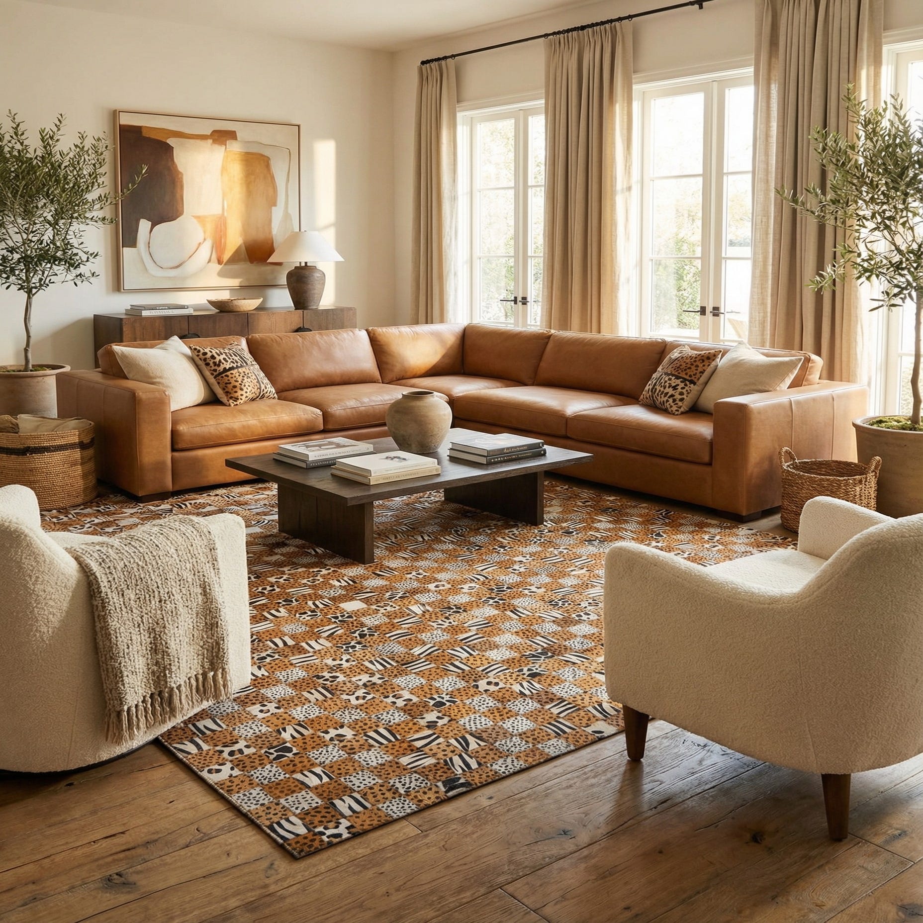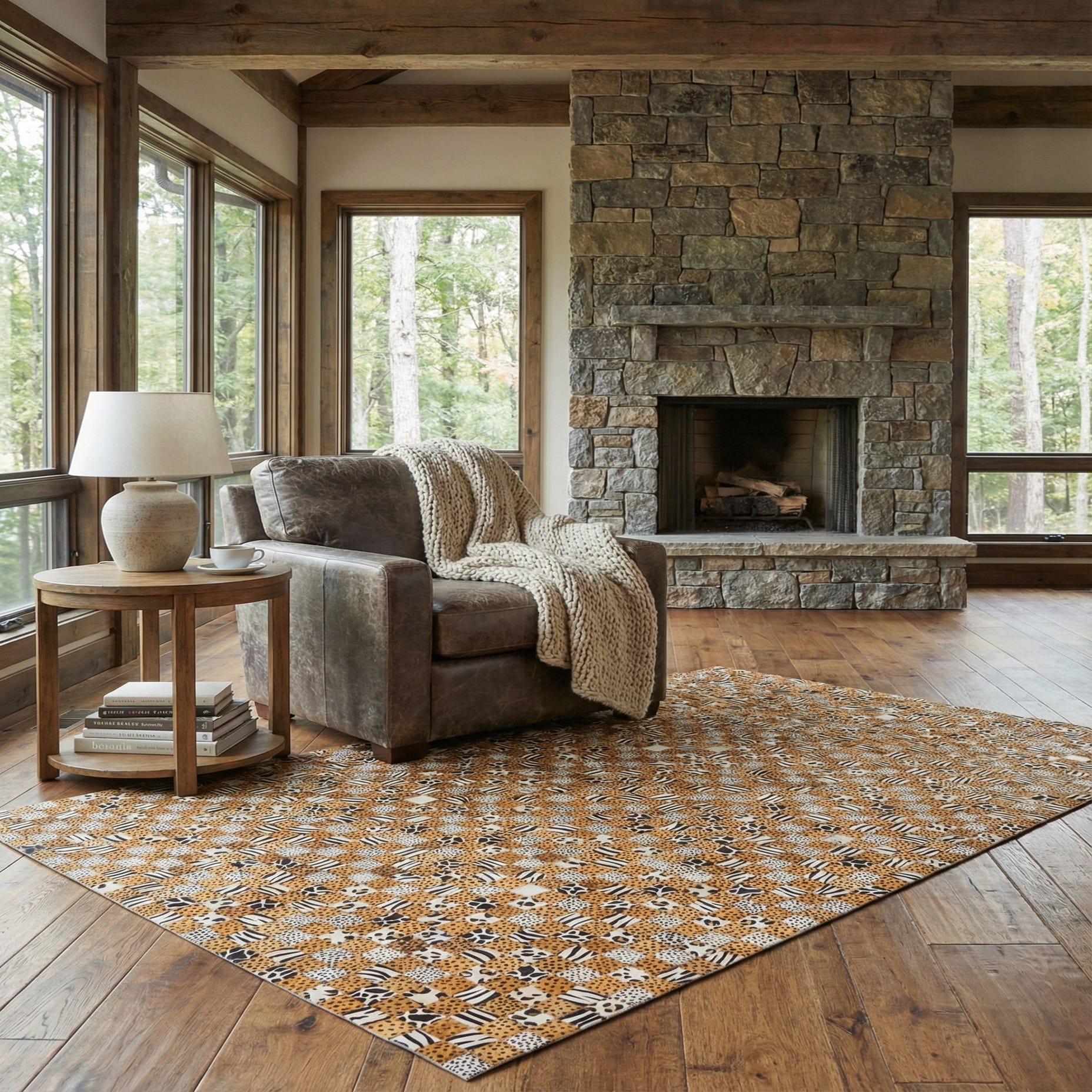5' 1 x 8' Cowhide Leather Rug