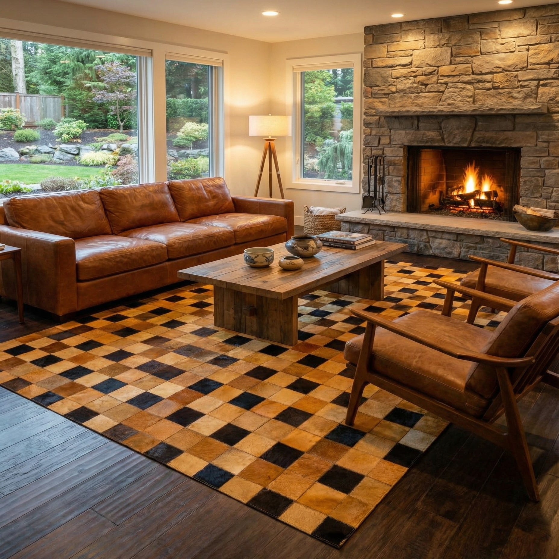 Detail image of 5' 2 x 8' Cowhide Stocks Rug