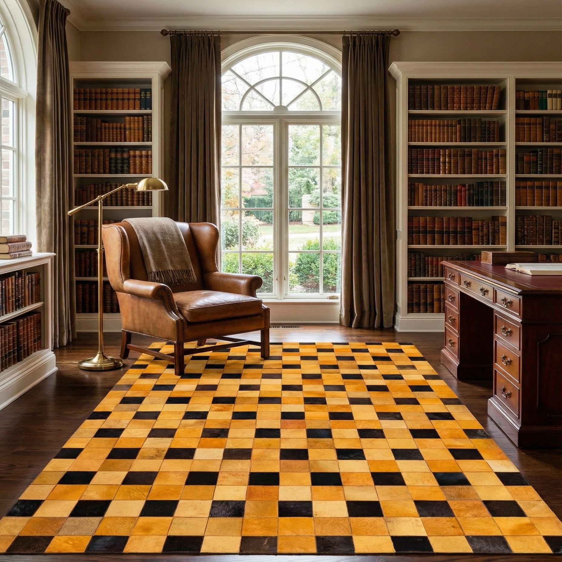 Primary color is Yellow. Colors in this rug include: Yellow, Brown.