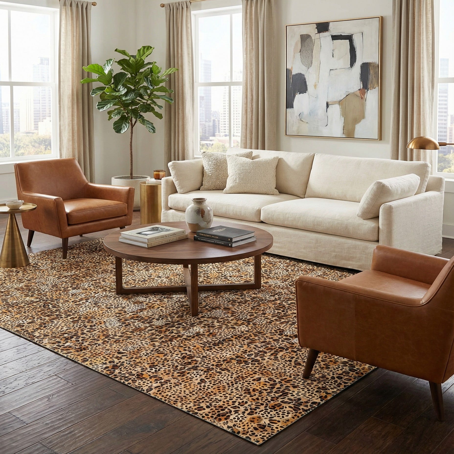 Primary color is Yellow. Colors in this rug include: Yellow, Black, Brown.