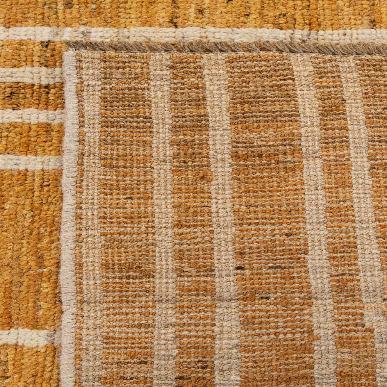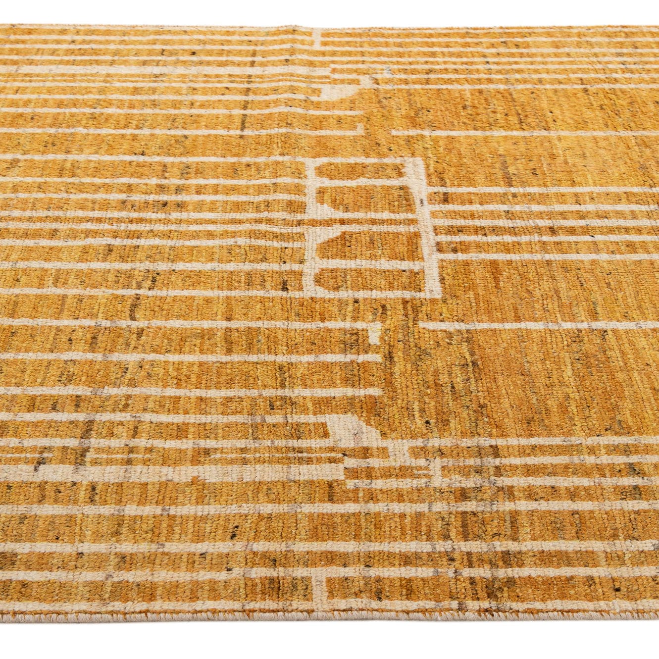 Primary color is Yellow. Colors in this rug include: Yellow, Brown, Ivory.