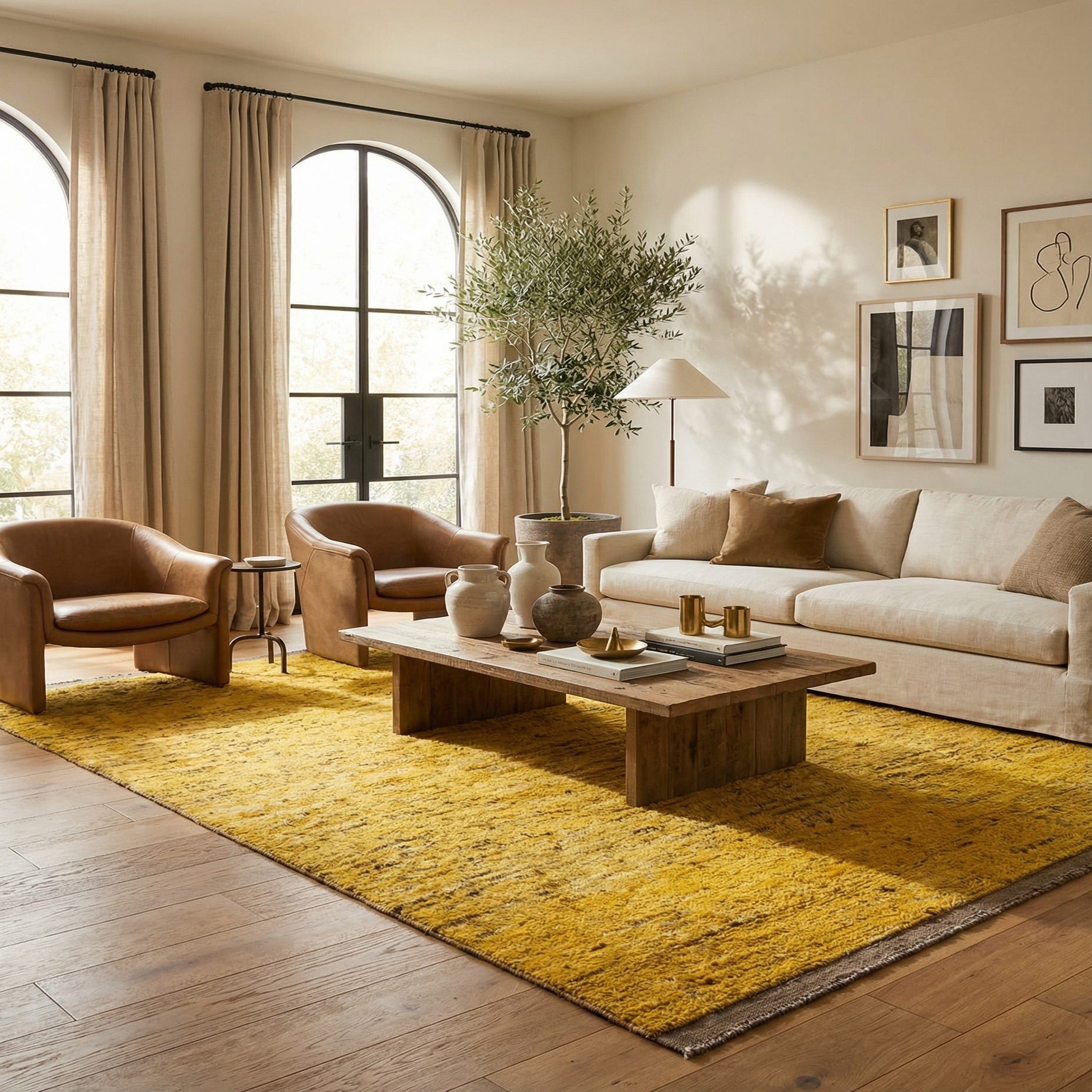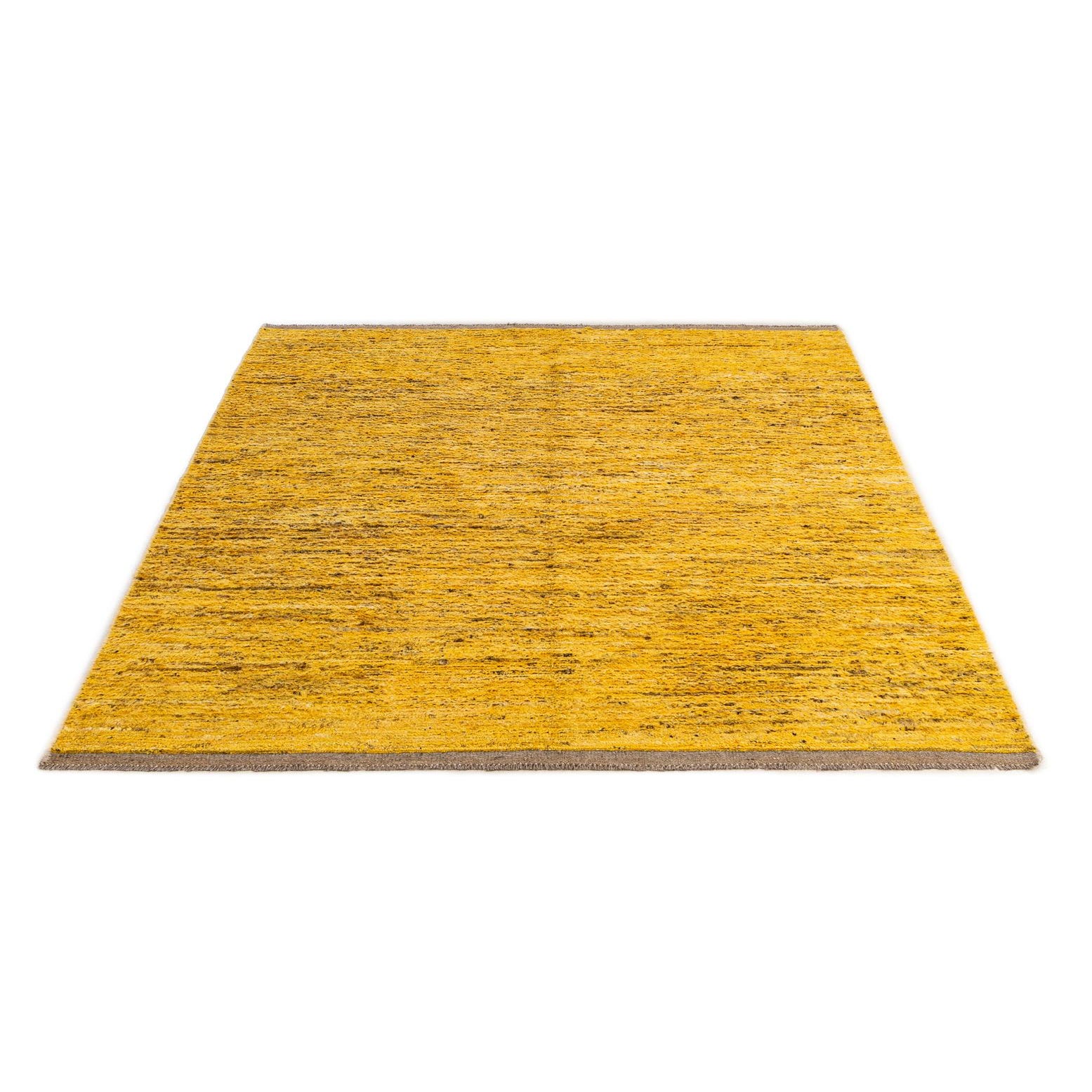 Primary color is Yellow. Colors in this rug include: Yellow, Brown.