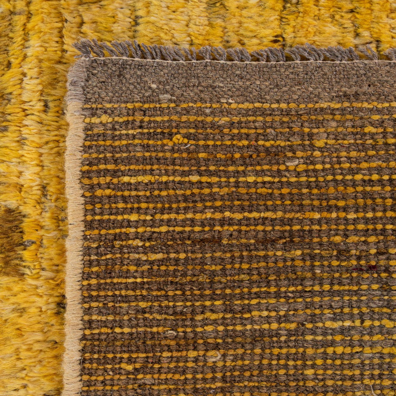 Primary color is Yellow. Colors in this rug include: Yellow, Black.