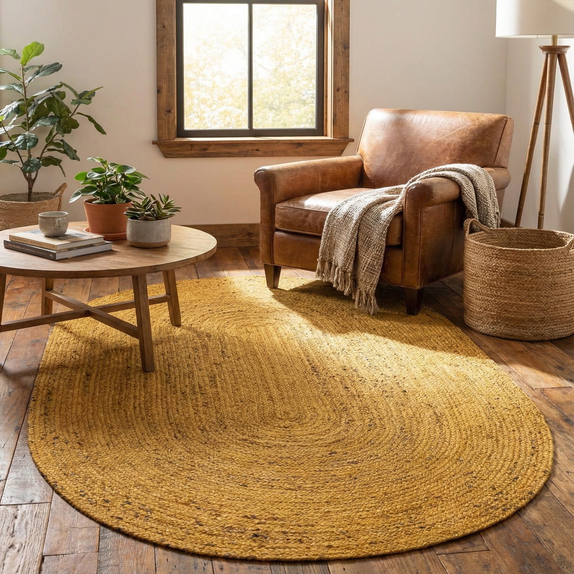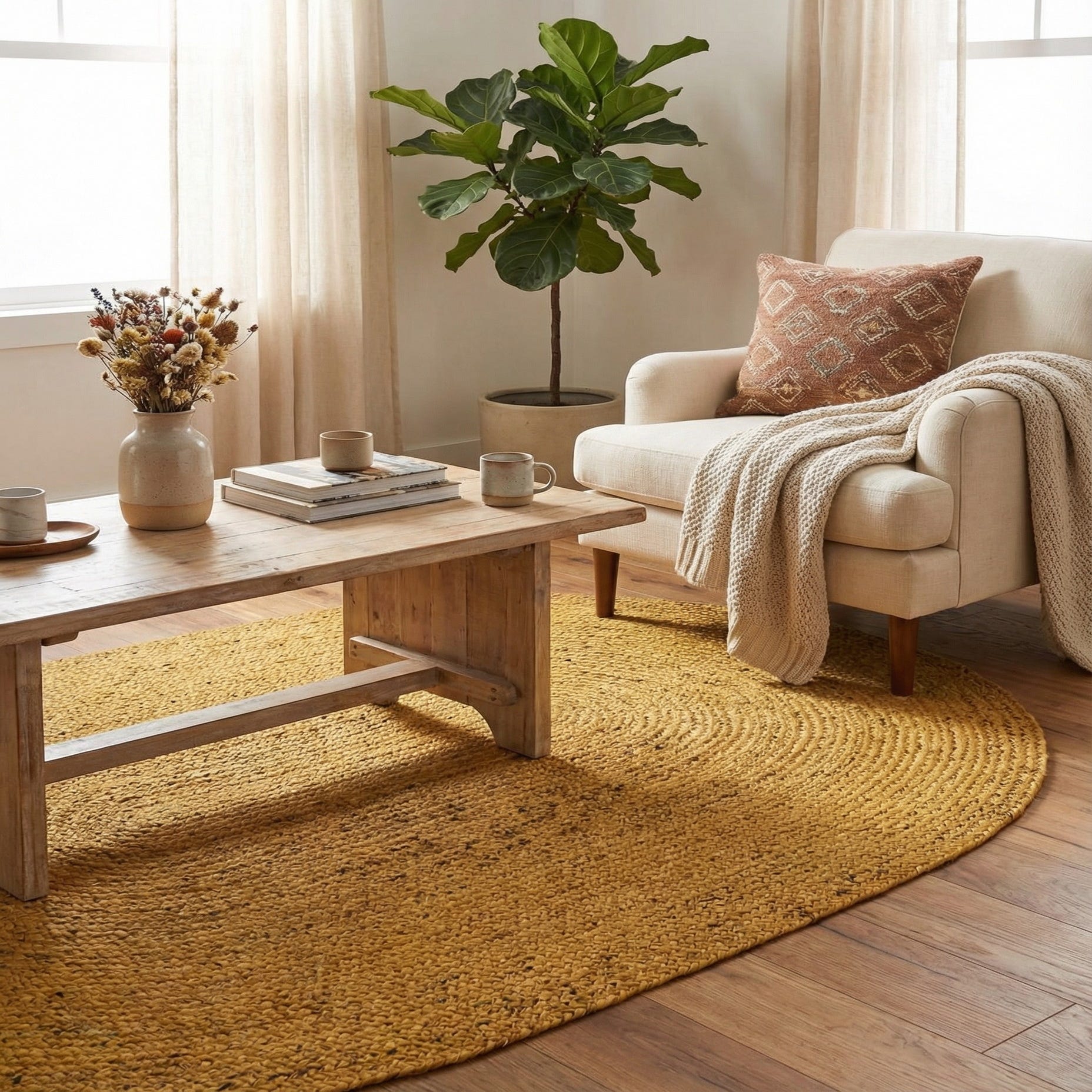 5' 1 x 8' Hand Braided Jute Oval Rug