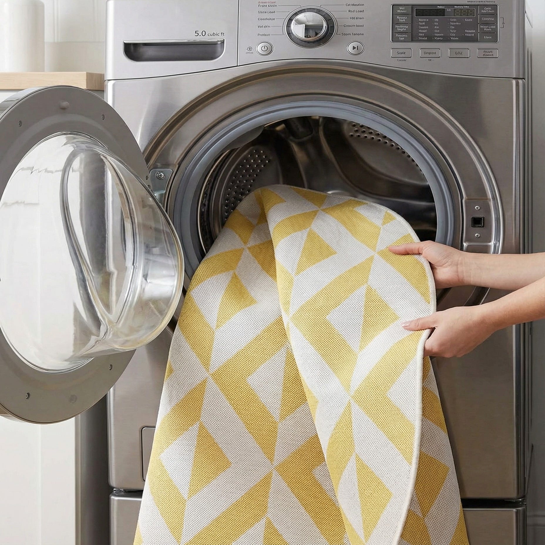 Primary color is Yellow. Colors in this rug include: Yellow, Ivory.