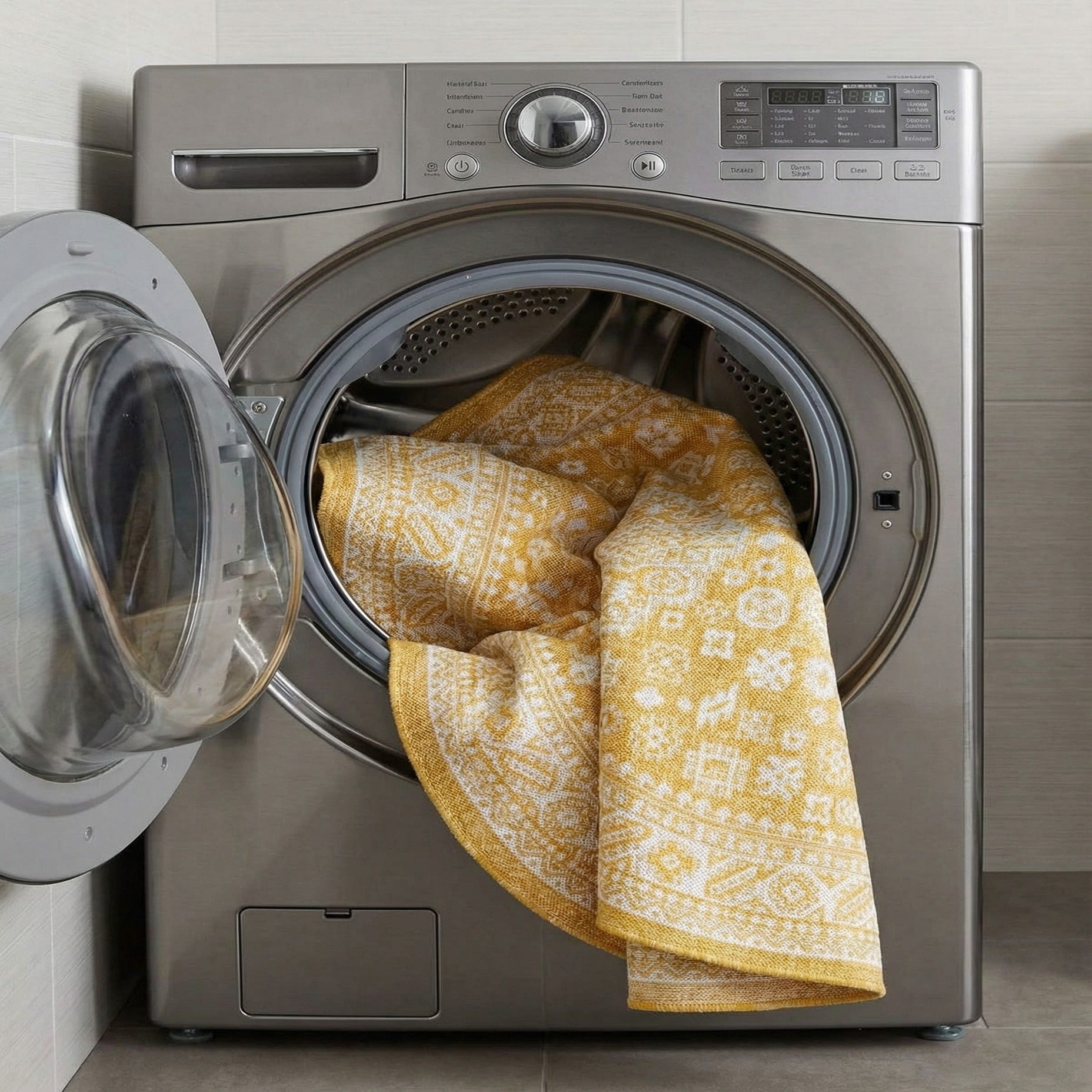 Primary color is Yellow. Colors in this rug include: Yellow, Ivory.