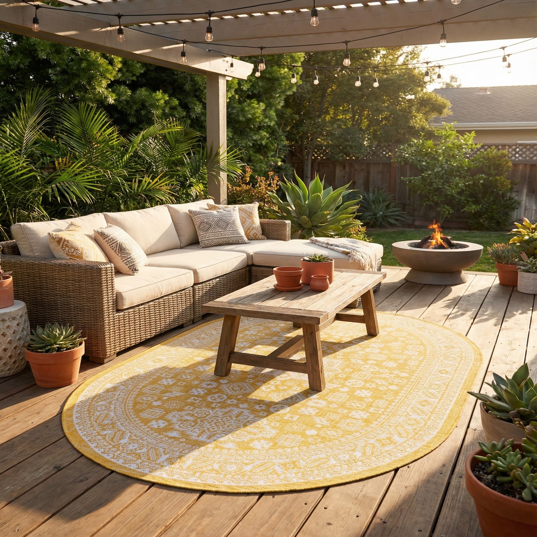 5' 3 x 8' Washable Aztec Indoor / Outdoor Oval Rug