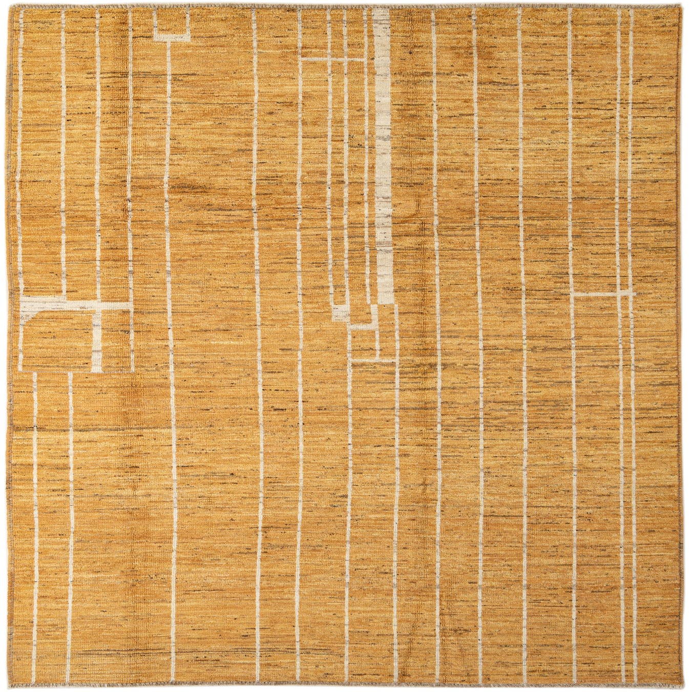 Primary color is Yellow. Colors in this rug include: Yellow, Brown, Ivory.