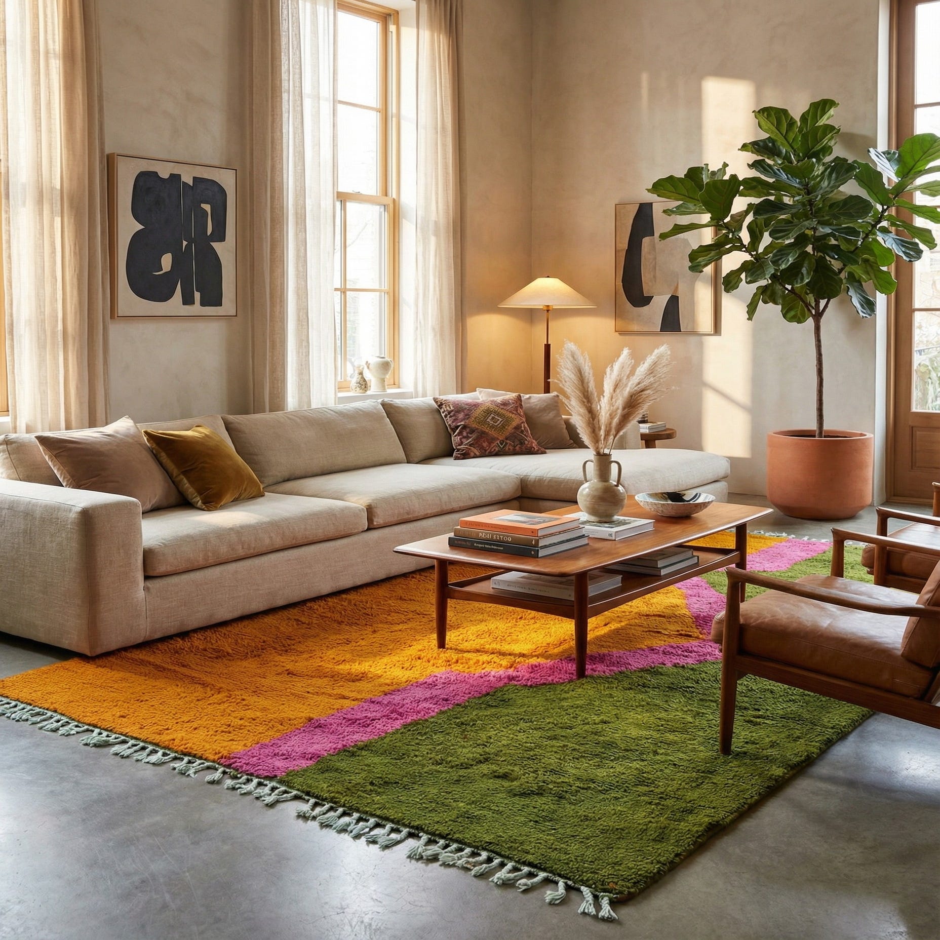 Primary color is Yellow. Colors in this rug include: Yellow, Pink, Green.
