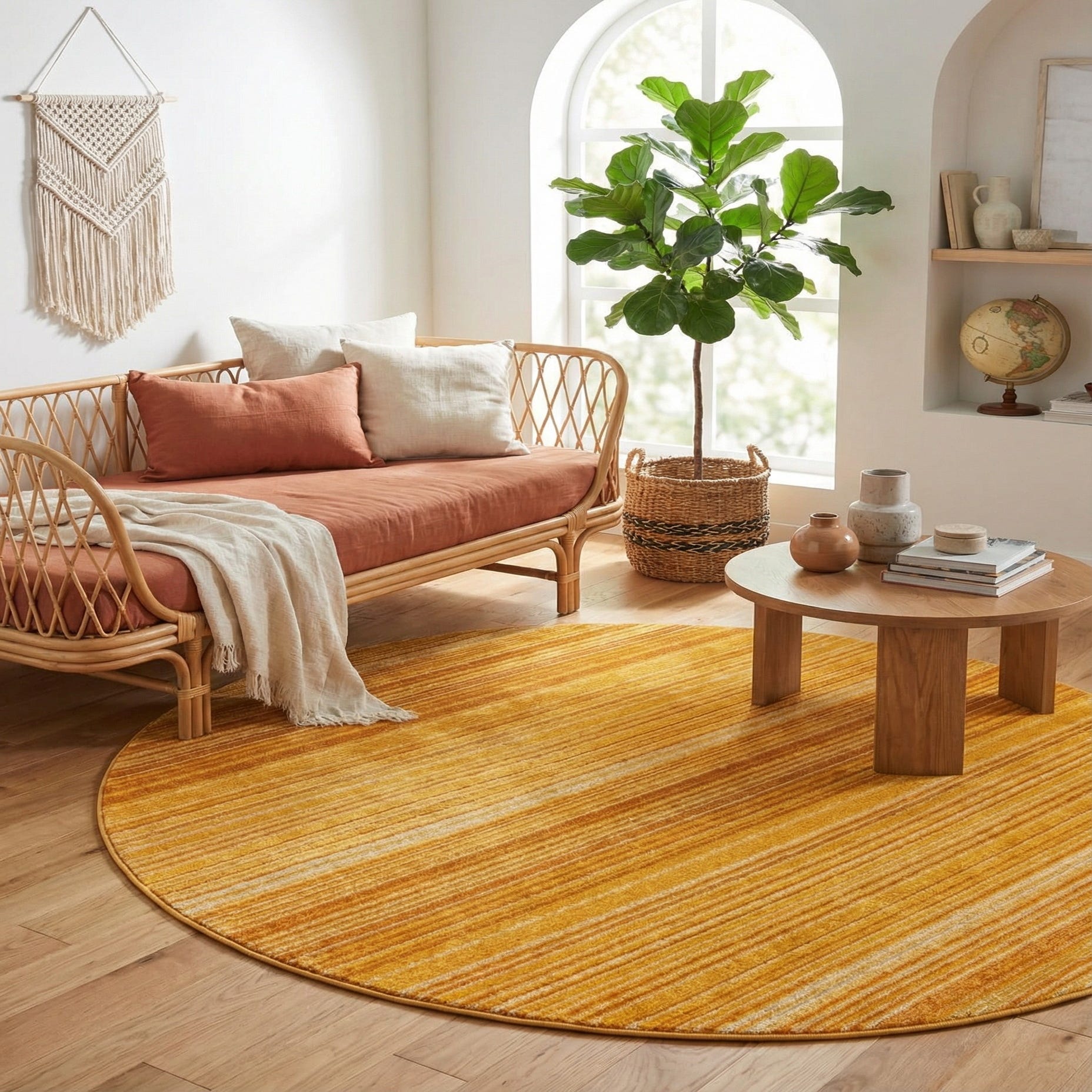 Primary color is Yellow. Colors in this rug include: Yellow, Orange.