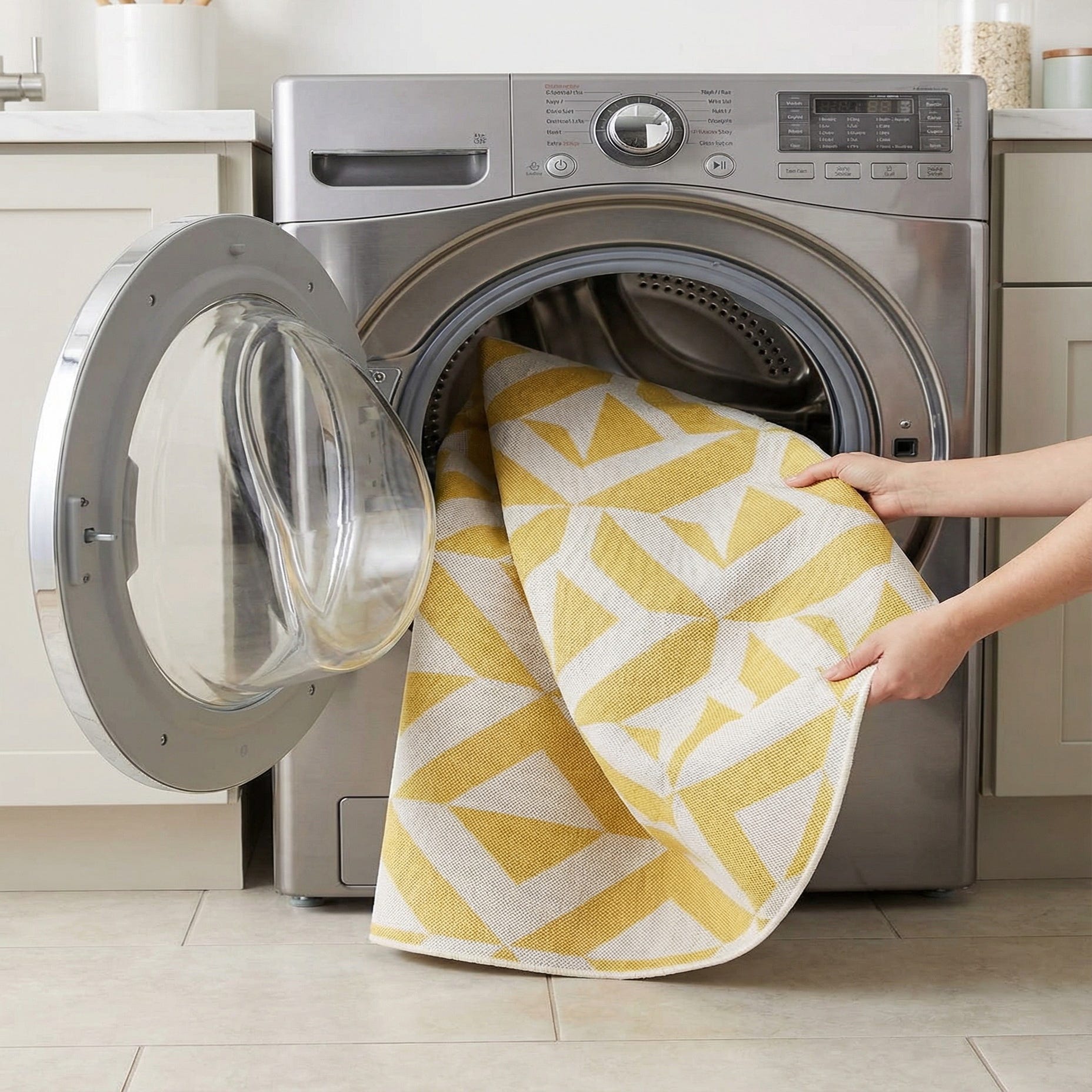 Primary color is Yellow. Colors in this rug include: Yellow, Ivory.