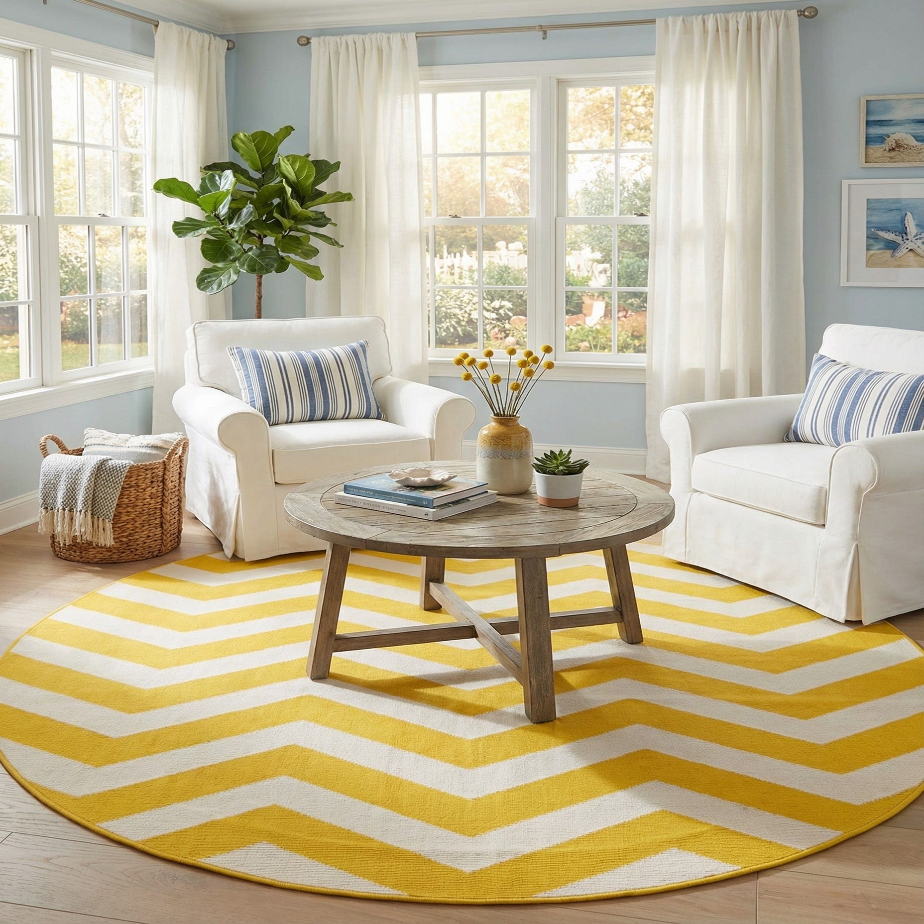 7' x 7' Washable Coastal Indoor / Outdoor Round Rug