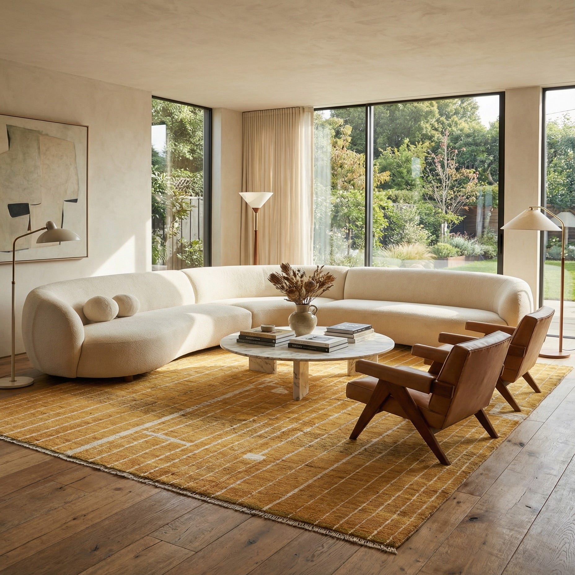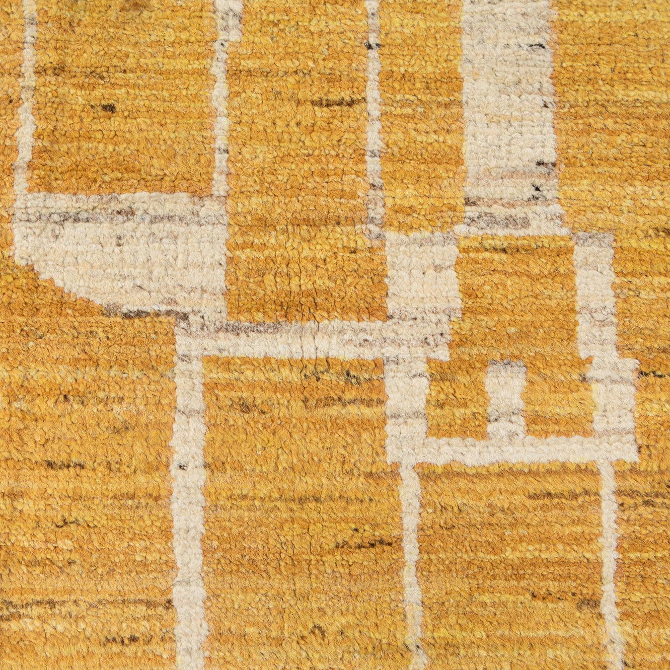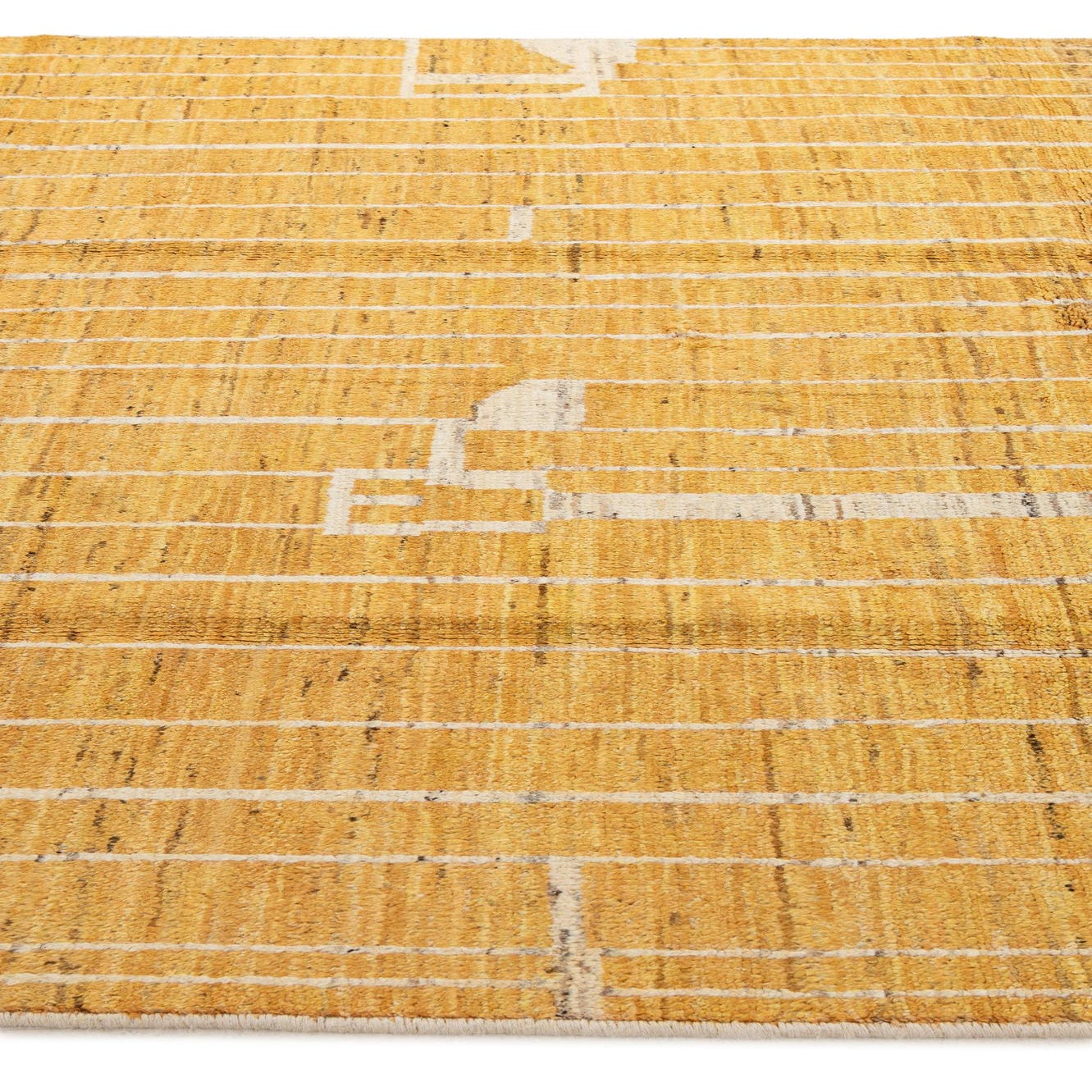 Primary color is Yellow. Colors in this rug include: Yellow, Brown, Ivory.