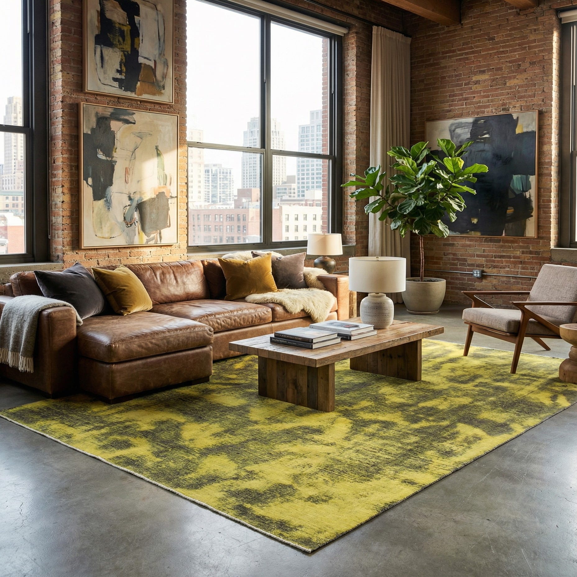Primary color is Yellow. Colors in this rug include: Yellow, Brown, Light Brown.