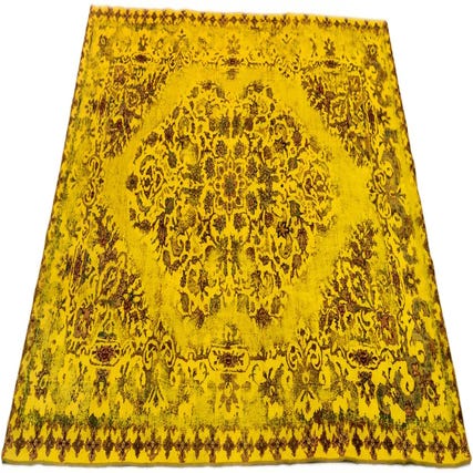 Primary color is yellow. Colors in this rug include: yellow, Brown.