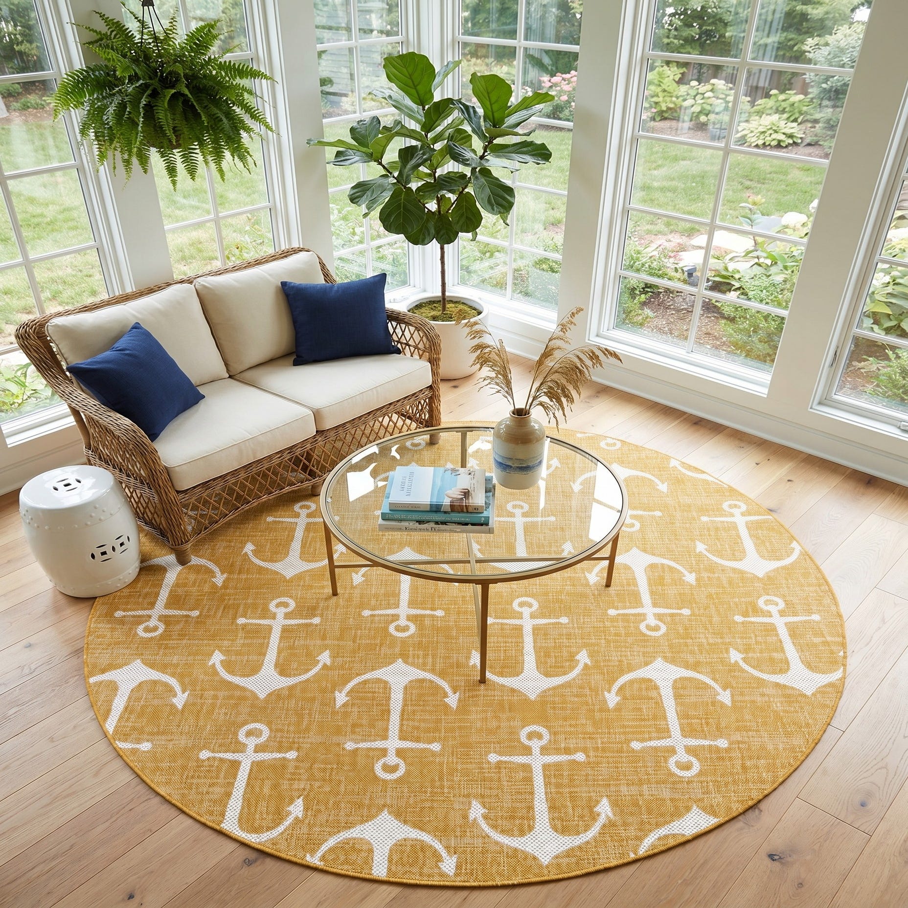 7' 10 x 7' 10 Easy-Clean Coastal Indoor / Outdoor Round Rug