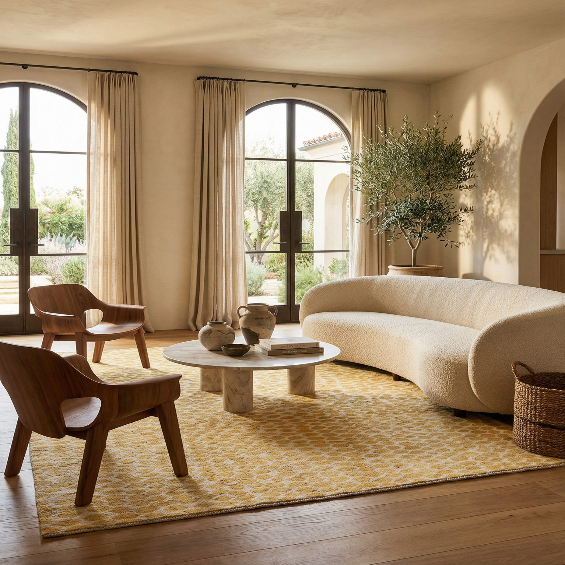 Primary color is Yellow. Colors in this rug include: Yellow, Ivory.
