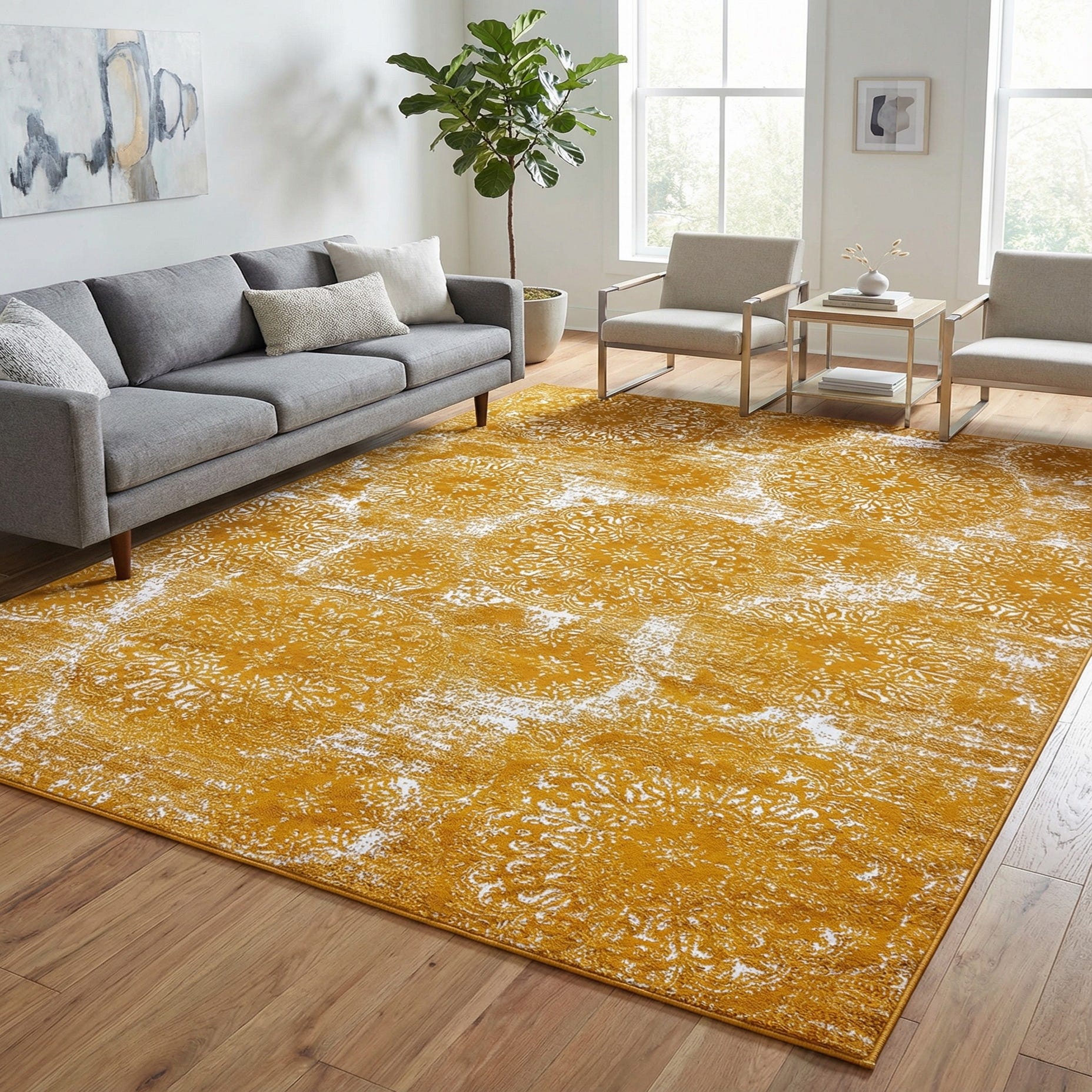 Primary color is Yellow. Colors in this rug include: Yellow, Ivory.