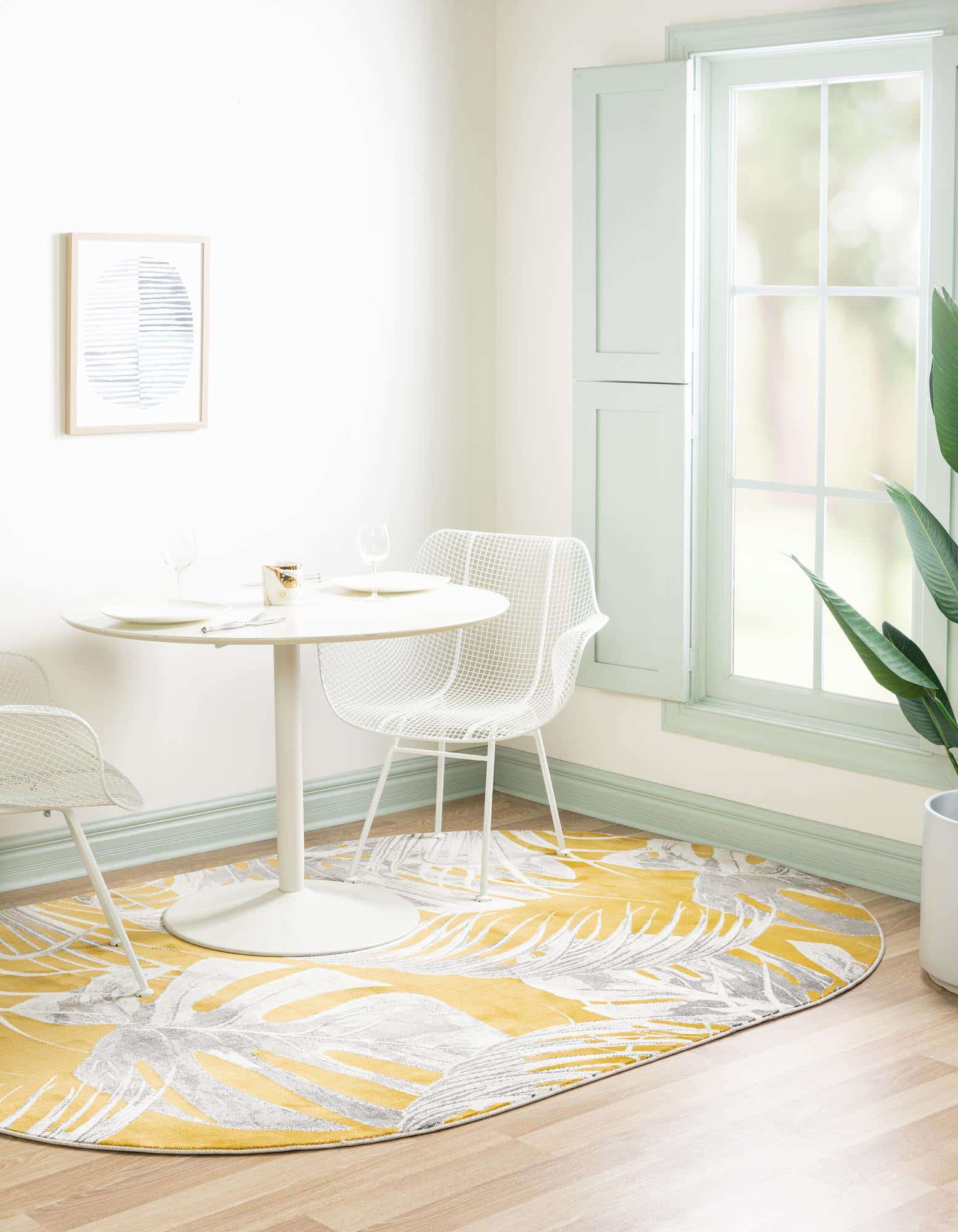 Primary color is Yellow. Colors in this rug include: Yellow, Ivory, Gray.