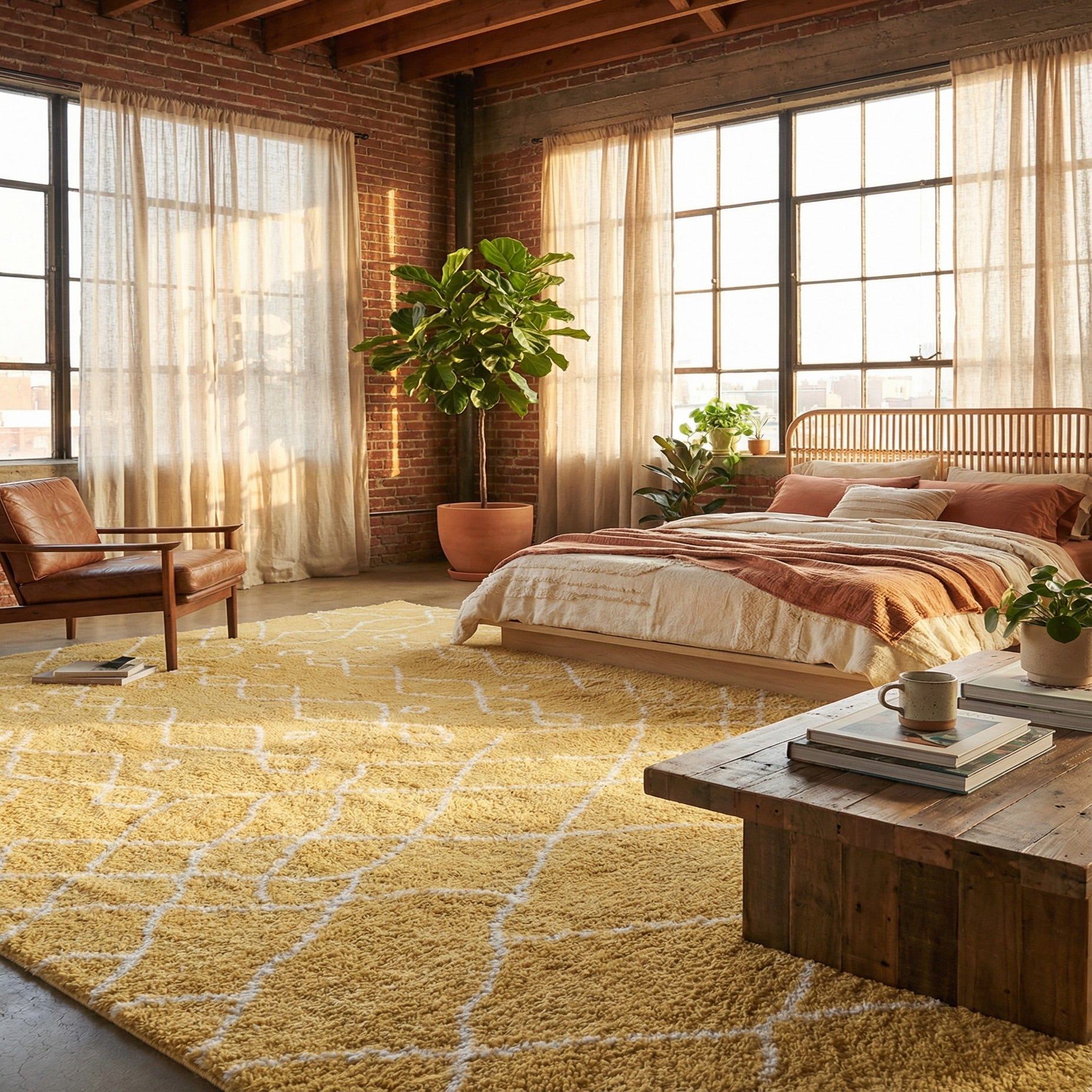 Primary color is Yellow. Colors in this rug include: Yellow, Ivory.