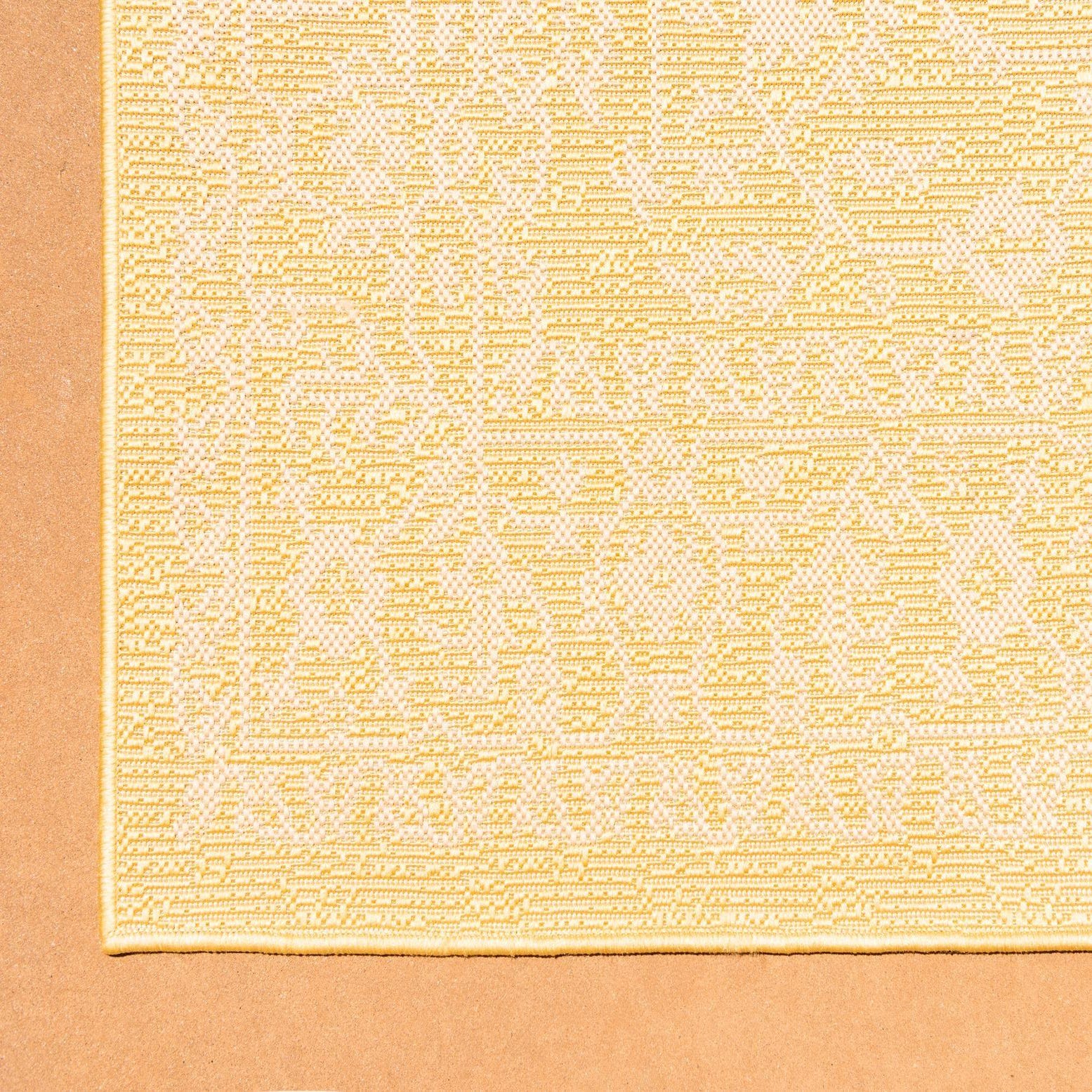 Primary color is Yellow. Colors in this rug include: Yellow, Beige.