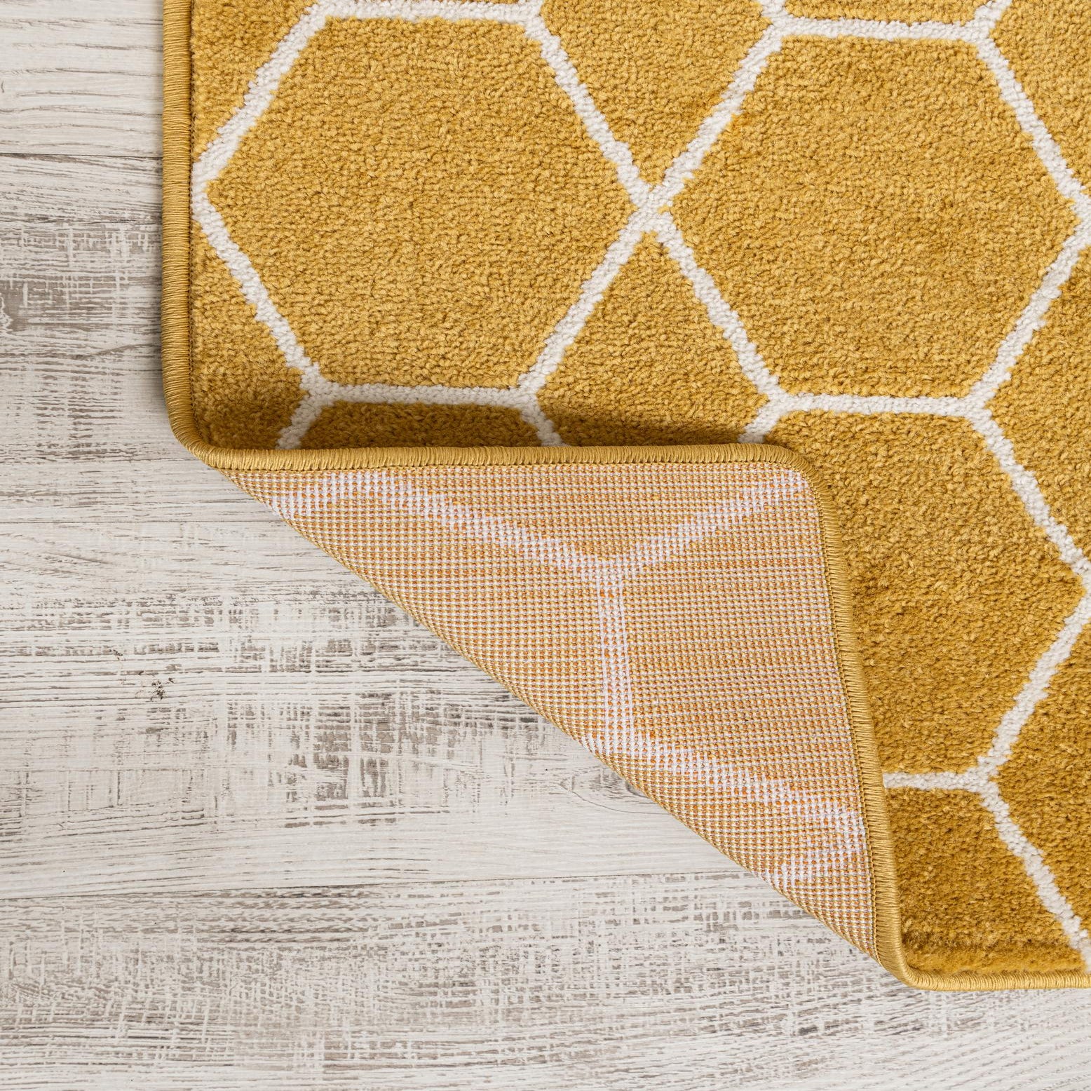 Primary color is Yellow. Colors in this rug include: Yellow, Ivory.