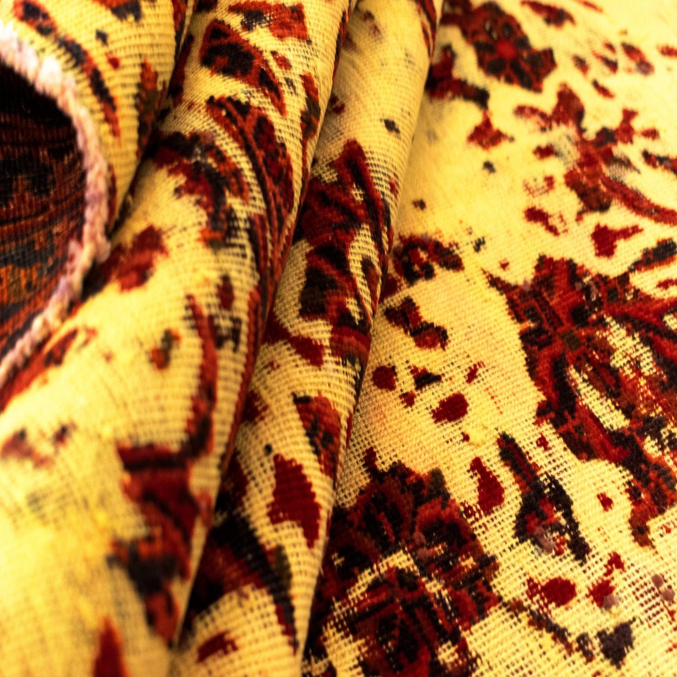 Primary color is yellow. Colors in this rug include: yellow, Red.