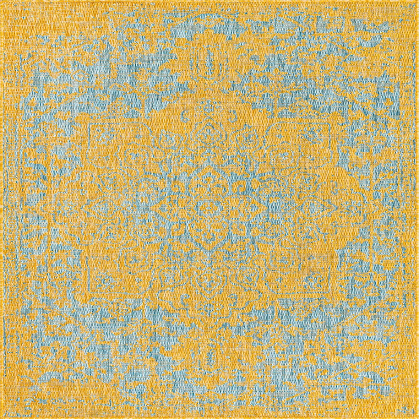 Detail image of Custom Yellow and Aqua  Washable Jill Zarin Indoor / Outdoor Rug