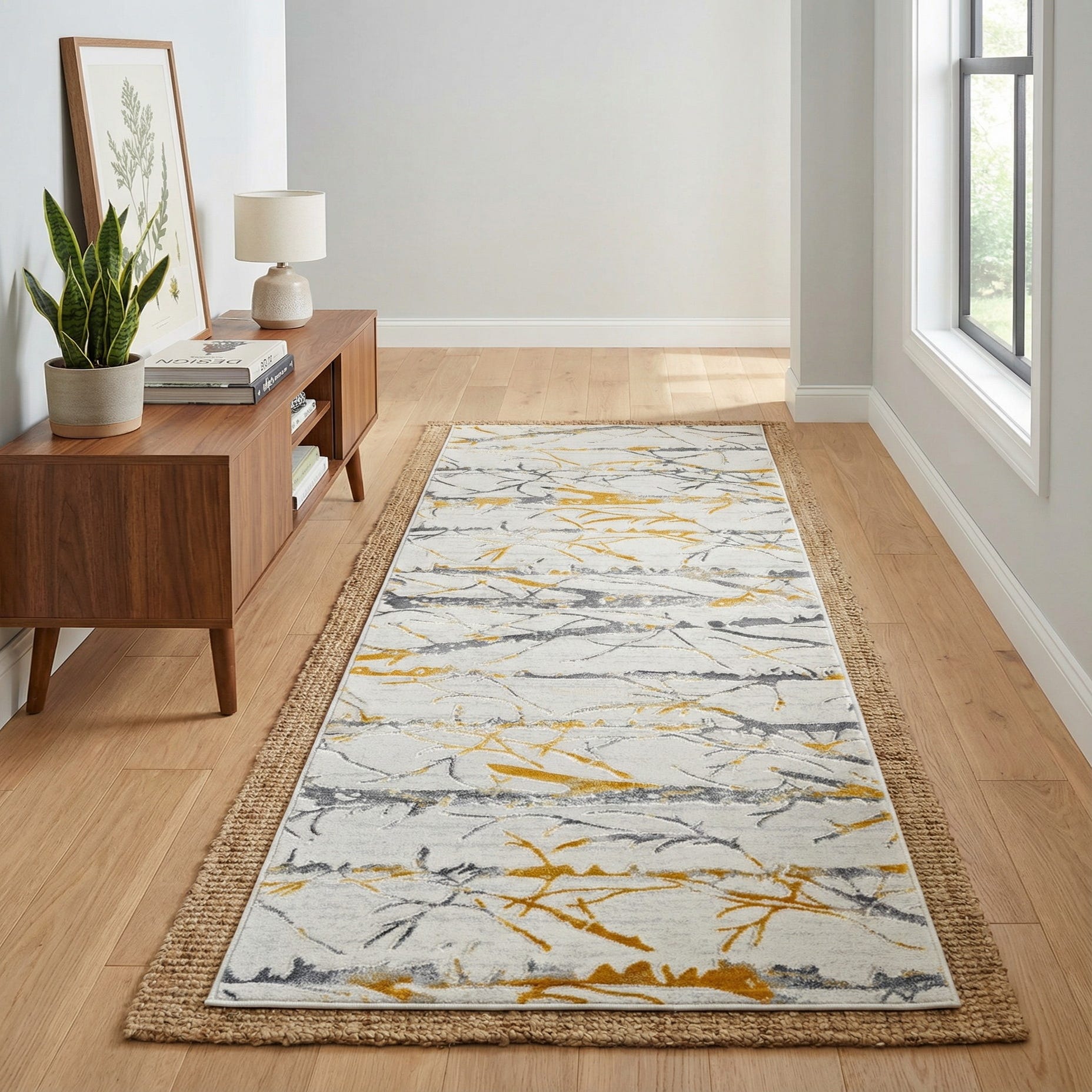 Primary color is Yellow and Gray. Colors in this rug include: Yellow and Gray, Ivory.