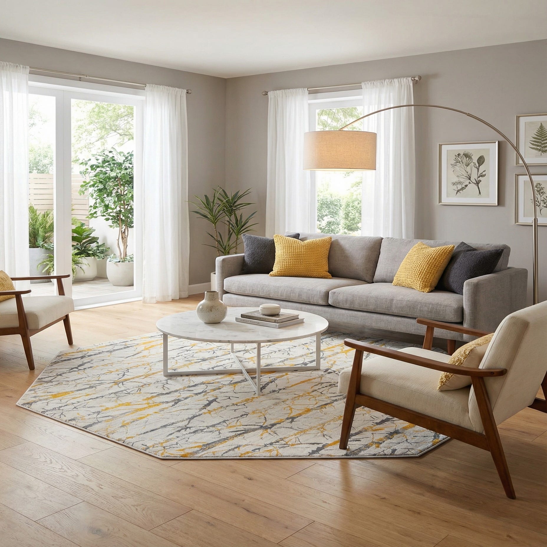 Primary color is Yellow and Gray. Colors in this rug include: Yellow and Gray, Ivory.