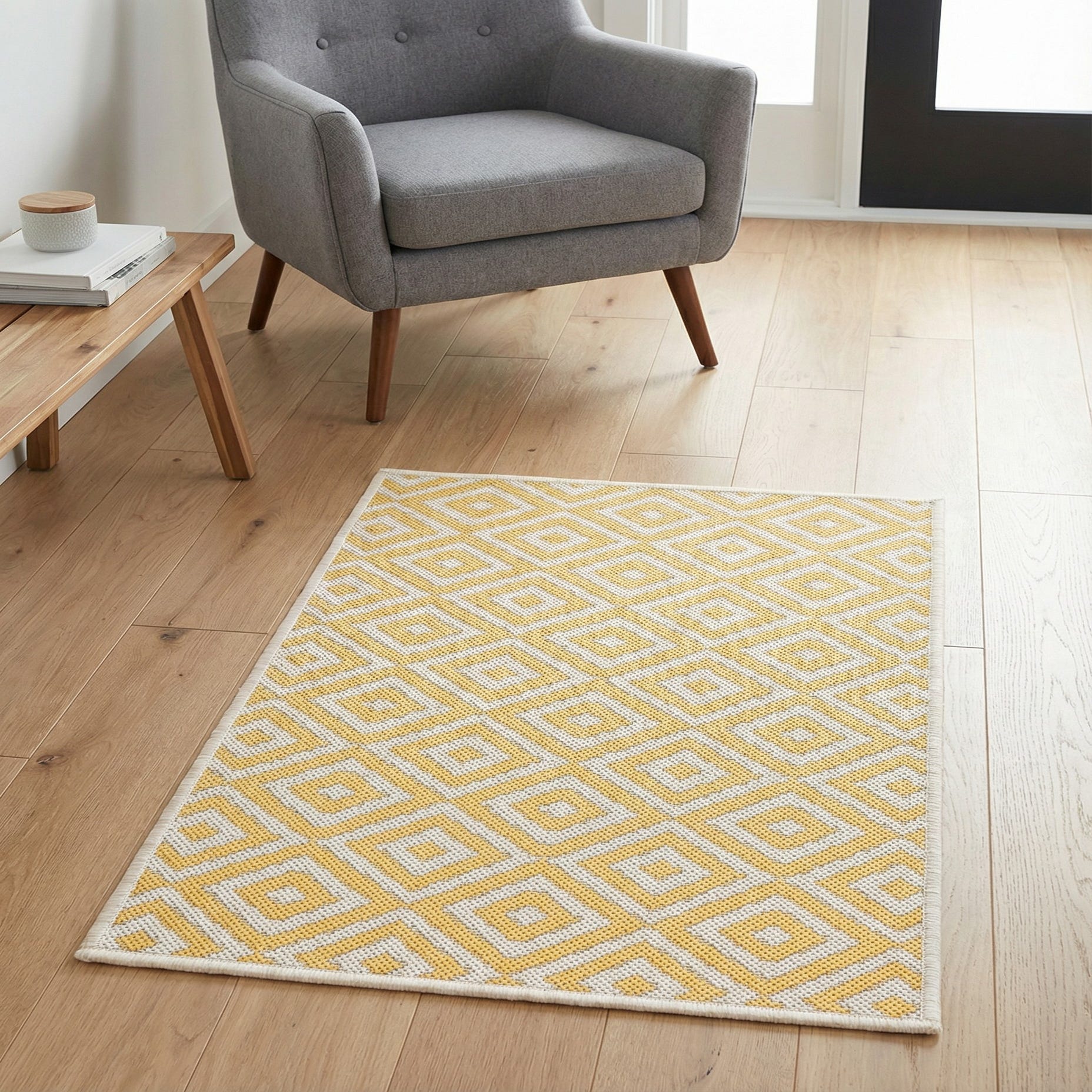 Primary color is Yellow Ivory. Colors in this rug include: Yellow Ivory, Ivory.