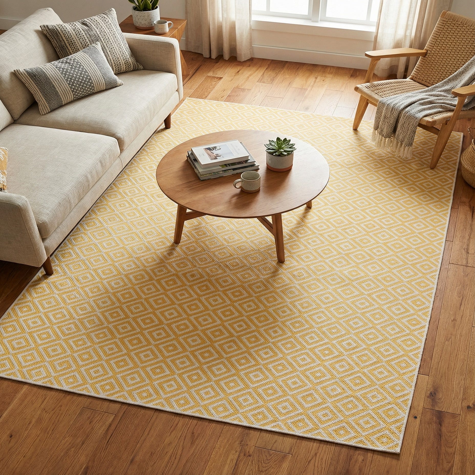 Primary color is Yellow Ivory. Colors in this rug include: Yellow Ivory, Ivory.