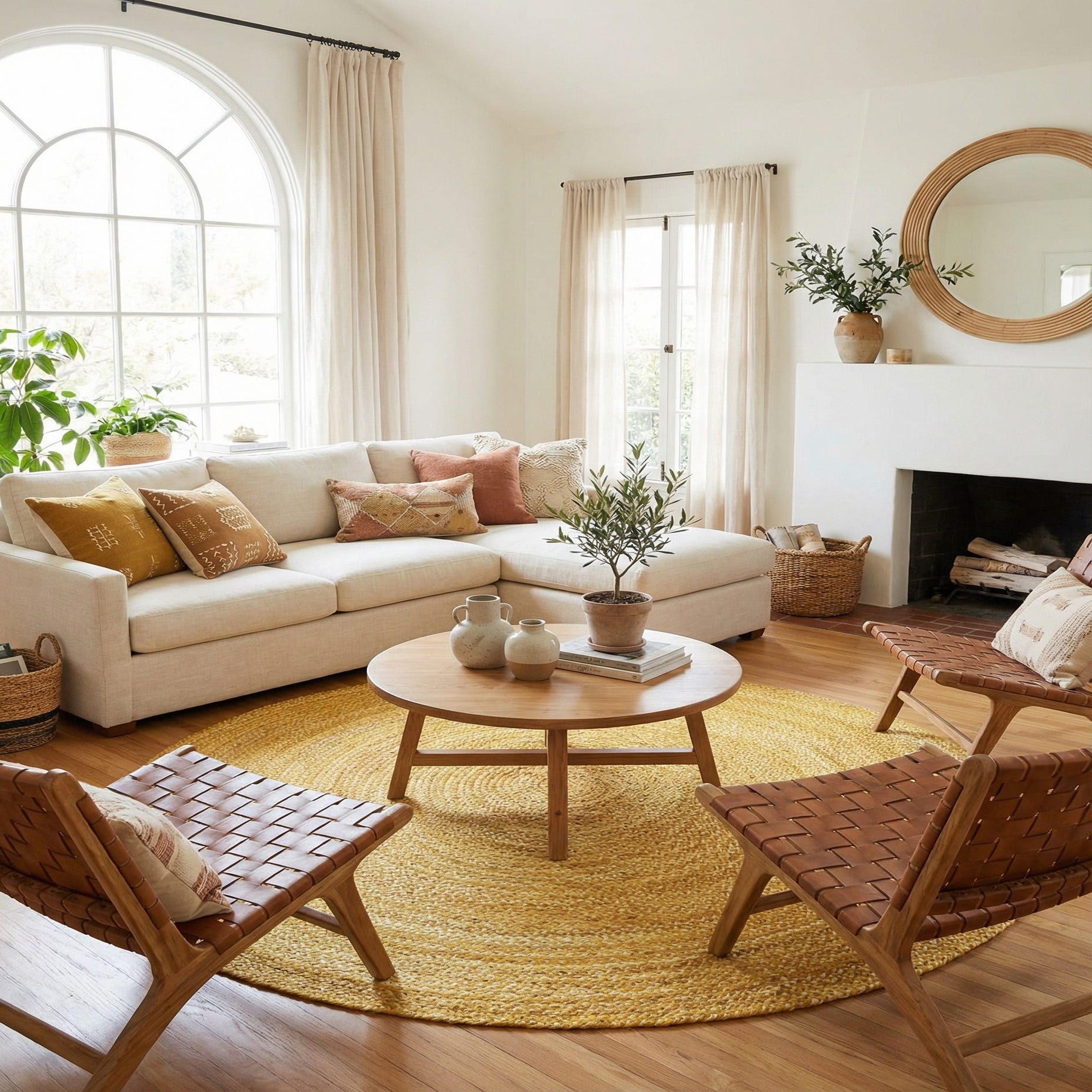 Primary image 8' x 8'  Hand Braided Chindi Round Rug